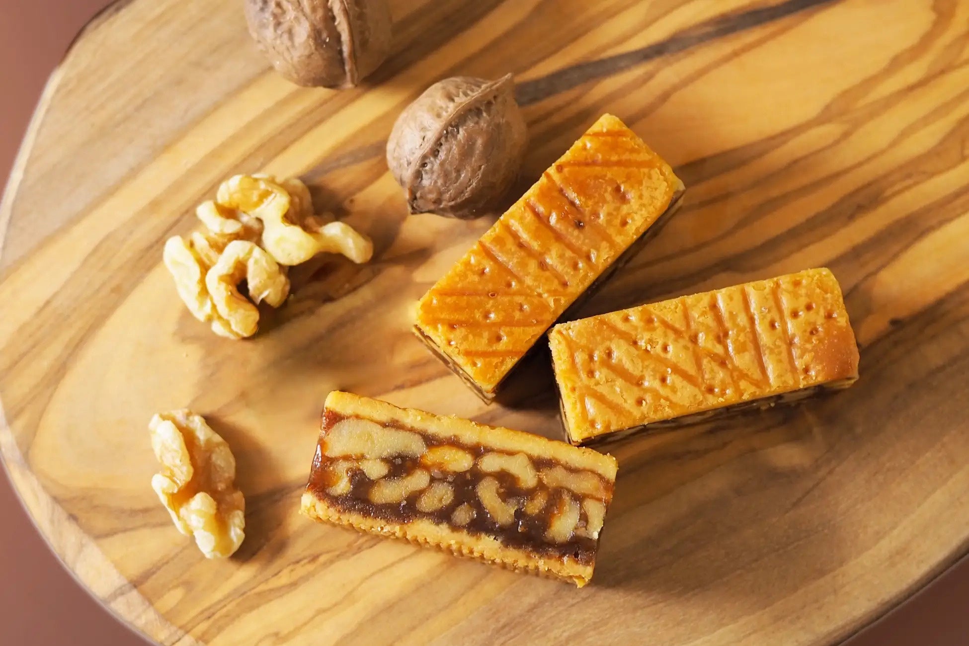サクサクのクッキーで包み込んだミルク感たっぷりのキャラメルと、香ばしいくるみのハーモニーが口っぱいに広がります。