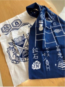 右) 【新商品】[岡崎百貨店×かまわぬ] てぬぐい(エンブレム/あみだ) 各2,200円