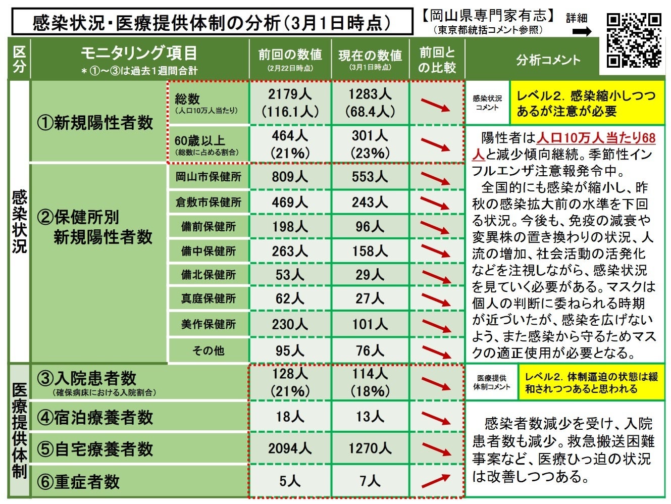 【岡山大学】岡山県内の感染状況・医療提供体制の分析について(2023年3月1日時点)
