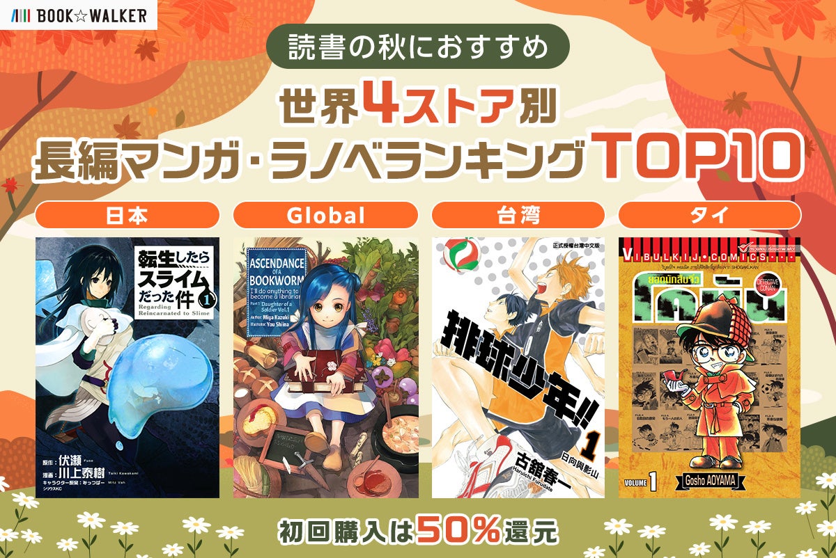 【BOOK☆WALKER売上ランキング】世界4ストア別の長編マンガ・ラノベTOP10を発表タイは『名探偵コナン』、台湾は『ハイキュー』が1位に