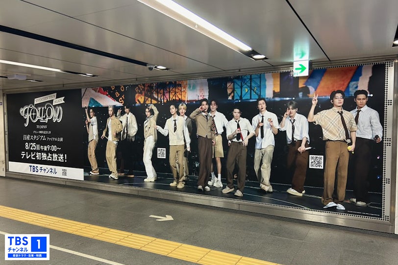 株式会社TBSテレビ(本社:東京都港区、代表取締役社長:龍宝正峰、以下TBS)が運営するCS放送「TBSチャンネル1 最新ドラマ・音楽・映画」では、世界的人気を誇るグローバルグループSEVENTEENのデビュー後最大規模となる初スタジアムツアー『SEVENTEEN TOUR 'FOLLOW' AGAIN TO JAPAN』から、2024年5月26日(日)に行われた日産スタジアム・ファイナル公演をテレビ初独占放送する。これを記念して、本日8月19日(月)から放送当日8月25日(日)までの一週間期間限定で、東急東横線「渋谷駅」と東京メトロ半蔵門線「表参道駅」ヒルズ口エリアでSEVENTEENの大型広告が登場する!