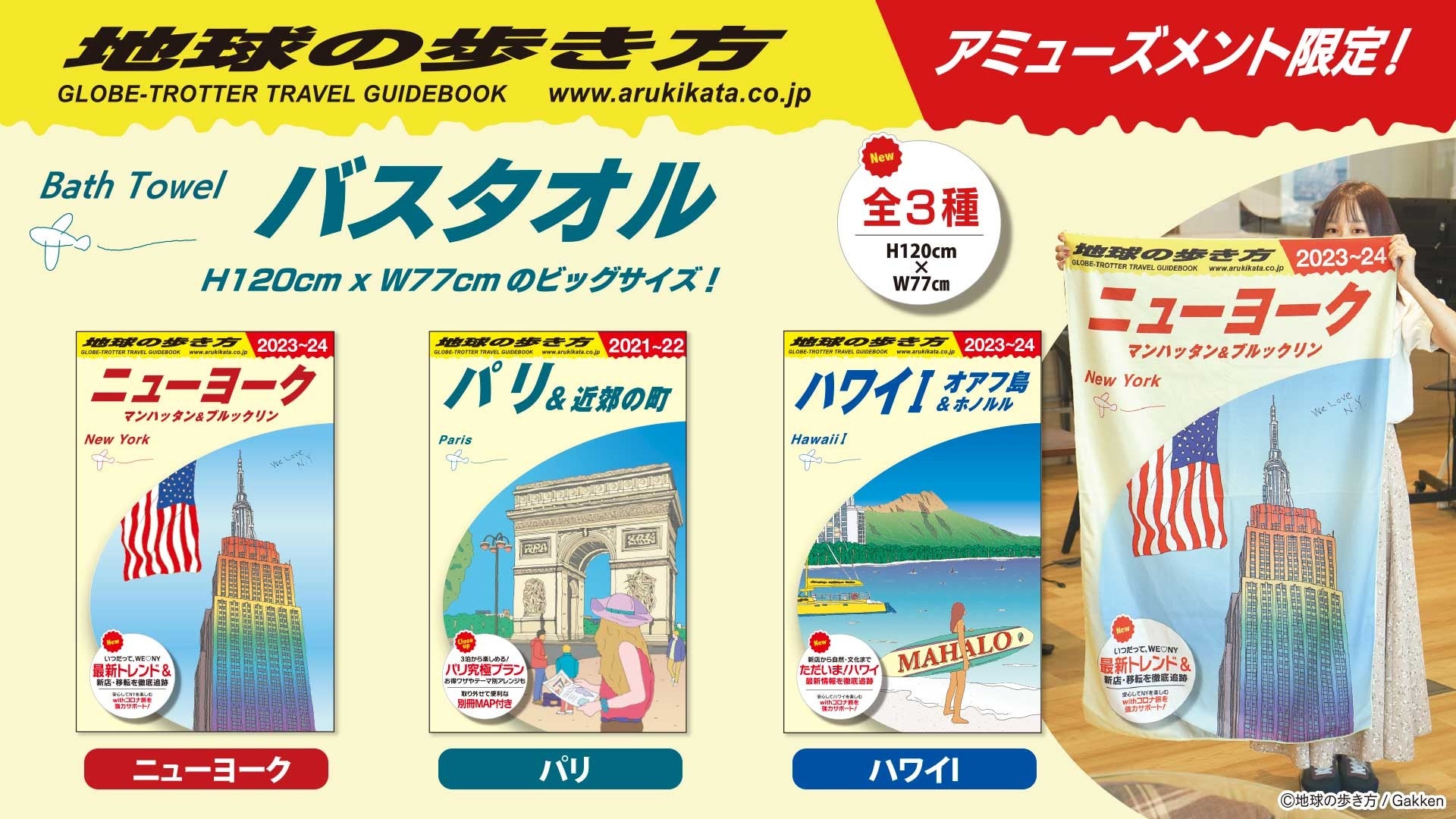 『地球の歩き方』の表紙を再現したバスタオルです。存在感のある120cmのBIGサイズで登場!旅行に持って行くのにもオススメです。