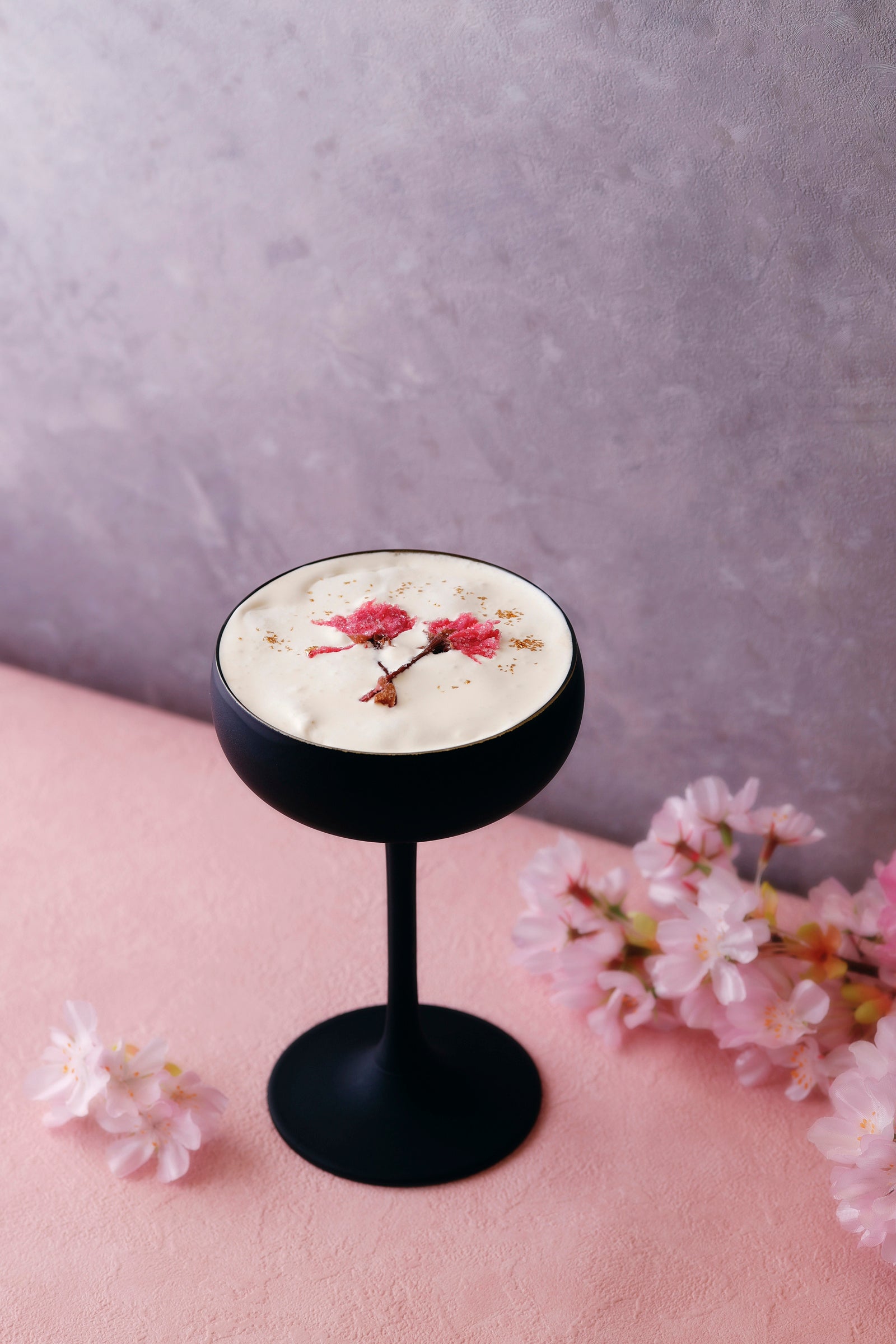 東京の景色が一望できる空間で約100種類のクラフトジンや本格的なカクテルをご提供する22階スカイラウンジ「コンパスローズ」では、桜の葉を思わせる香りが特徴の「ズブロッカ バイソングラス」をベースに桜リキュールとつぶ餡、黒砂糖を使用したカクテルをご提供いたします。桜餅のような優しい風味に春を感じる一品です。