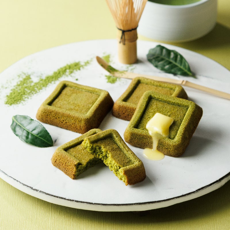 フランス産生乳の発酵バターと宇治抹茶を生地に練り込み、焼き上げた季節限定フィナンシェ。発酵バターの芳醇なコクと抹茶の奥深い香が織りなす上品な味わいをお楽しみください。