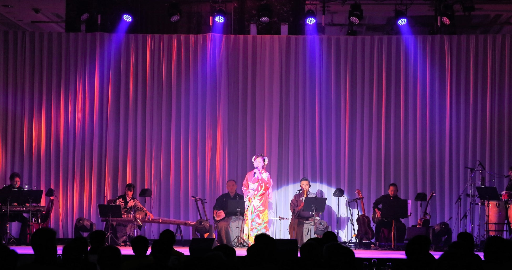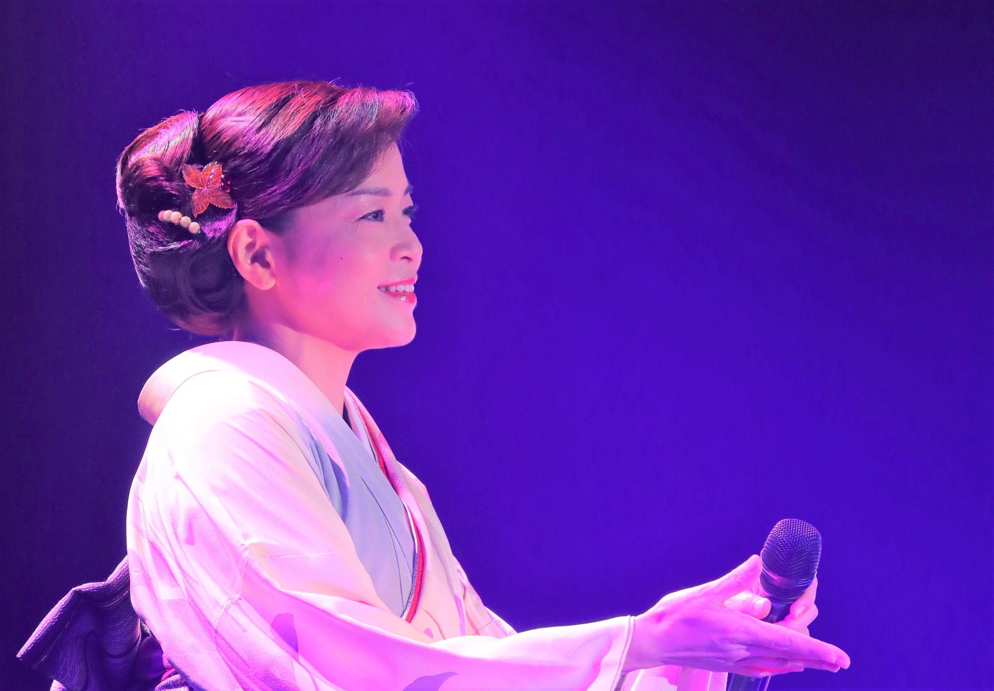 続いてショーは一転、NHK紅白歌合戦初出場曲「みれん酒」のイントロが流れると、客席は大きな拍手と手拍子に包まれた。師匠である二葉百合子の「関東一本〆」で会場を巻き込み、晴れやかな雰囲気の中、ファンに人気の高いオリジナル曲「桟橋」「夕霧海峡」「女の花舞台」と続き、華やかに観客を魅了した。