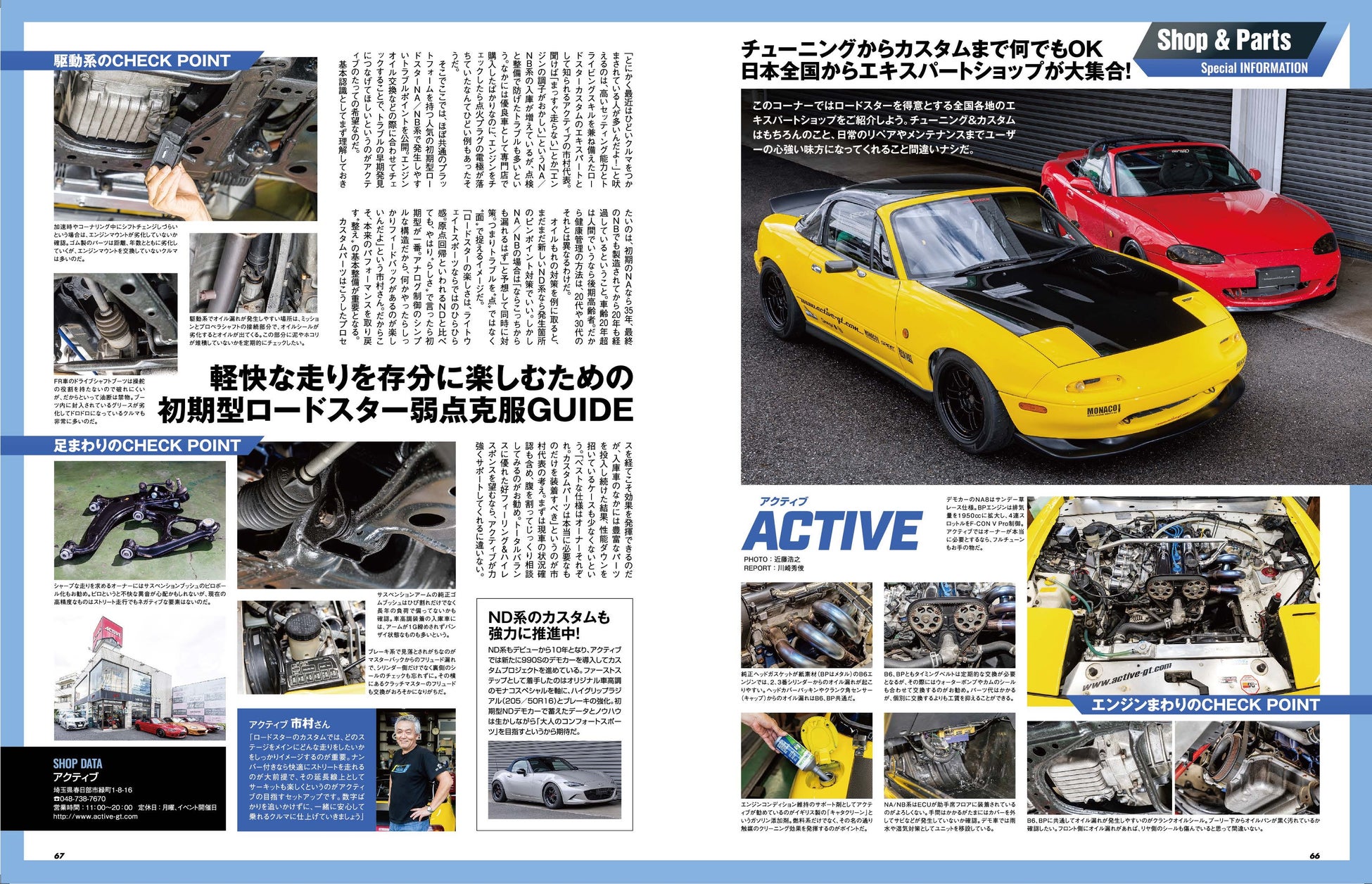 日本全国のプロショップから寄せられたマツダ・ロードスターの情報をご紹介。オリジナルパーツや、独自のノウハウを活かしたチューニングメニューなど読みどころ満載だ。