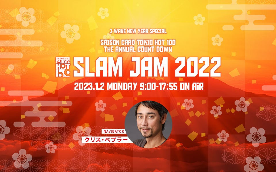 ラジオ局J-WAVE(81.3FM)では、2023年1月2日(月・祝)9:00~17:55、2022年の東京No.1ヒットソングを決める特別番組『J-WAVE NEW YEAR SPECIAL SAISON CARD TOKIO HOT 100 THE ANNUAL COUNT DOWN SLAM JAM 2022』を、クリス・ペプラーのナビゲートで放送いたします。