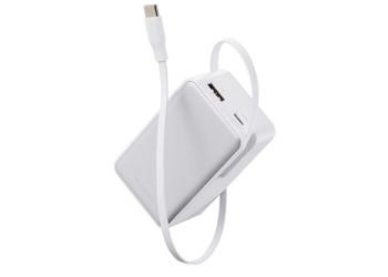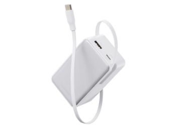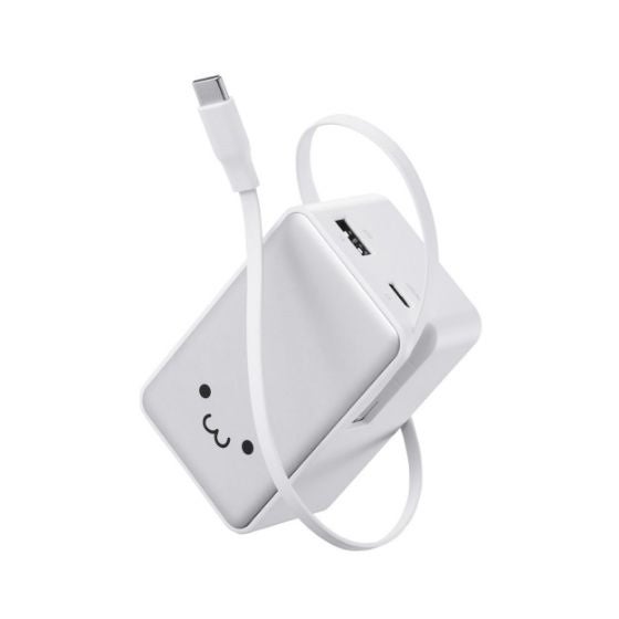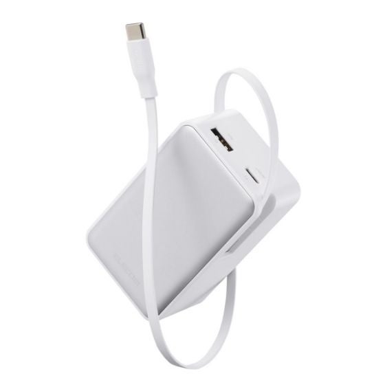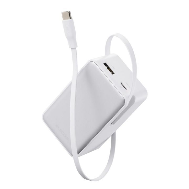 本体一体型の巻き取り式USB Type-Cケーブルを備えた、容量10,000mAhのモバイルバッテリーです。