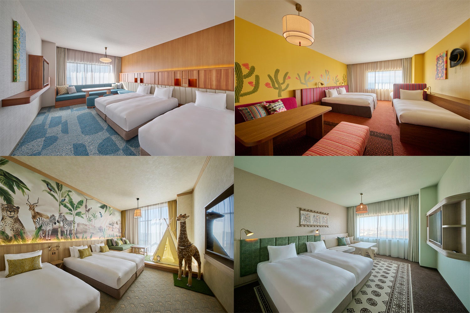 「ザロイヤルパーク舞浜」は、東京ディズニーリゾート徒歩圏内の立地に750室のグループ最大規模で開業しました。“TRAVELOGUE=異国の旅の記憶”のコンセプトを体現した空間と、快適な旅をサポートする機能を兼ね備え、旅のプロローグとエピローグを彩る滞在を提供します。客室は、ご家族連れやグループでのご利用に合わせ、4名利用を中心に最大6名様までご宿泊いただける多様なタイプを揃えており、世界の4つの海をテーマにデザインしています。
