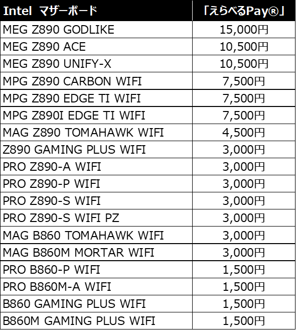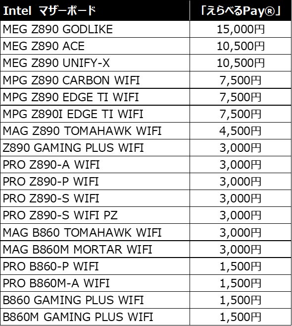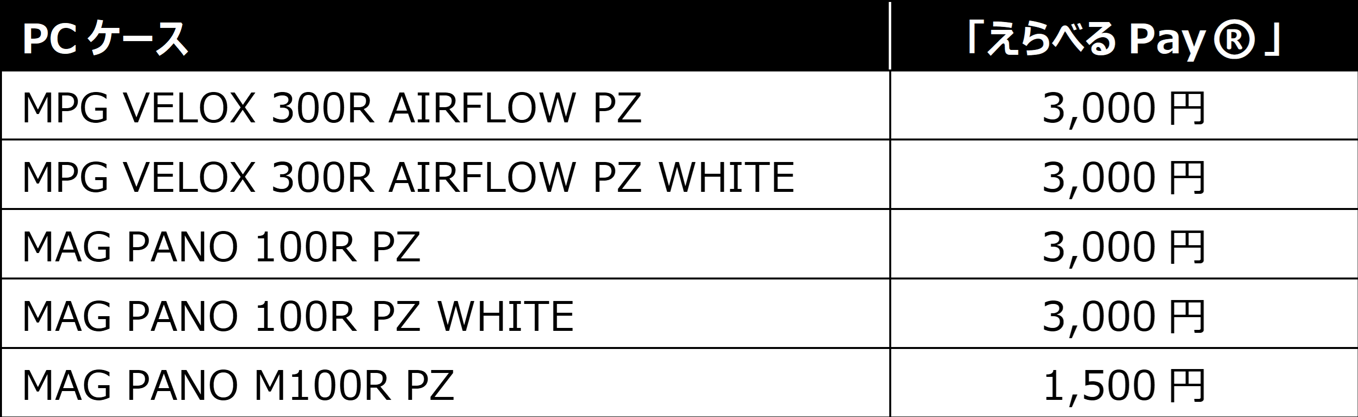 対象のMSI 自作PC パーツを購入すると最大15,000円分の「えらべるPay®」をプレゼント!