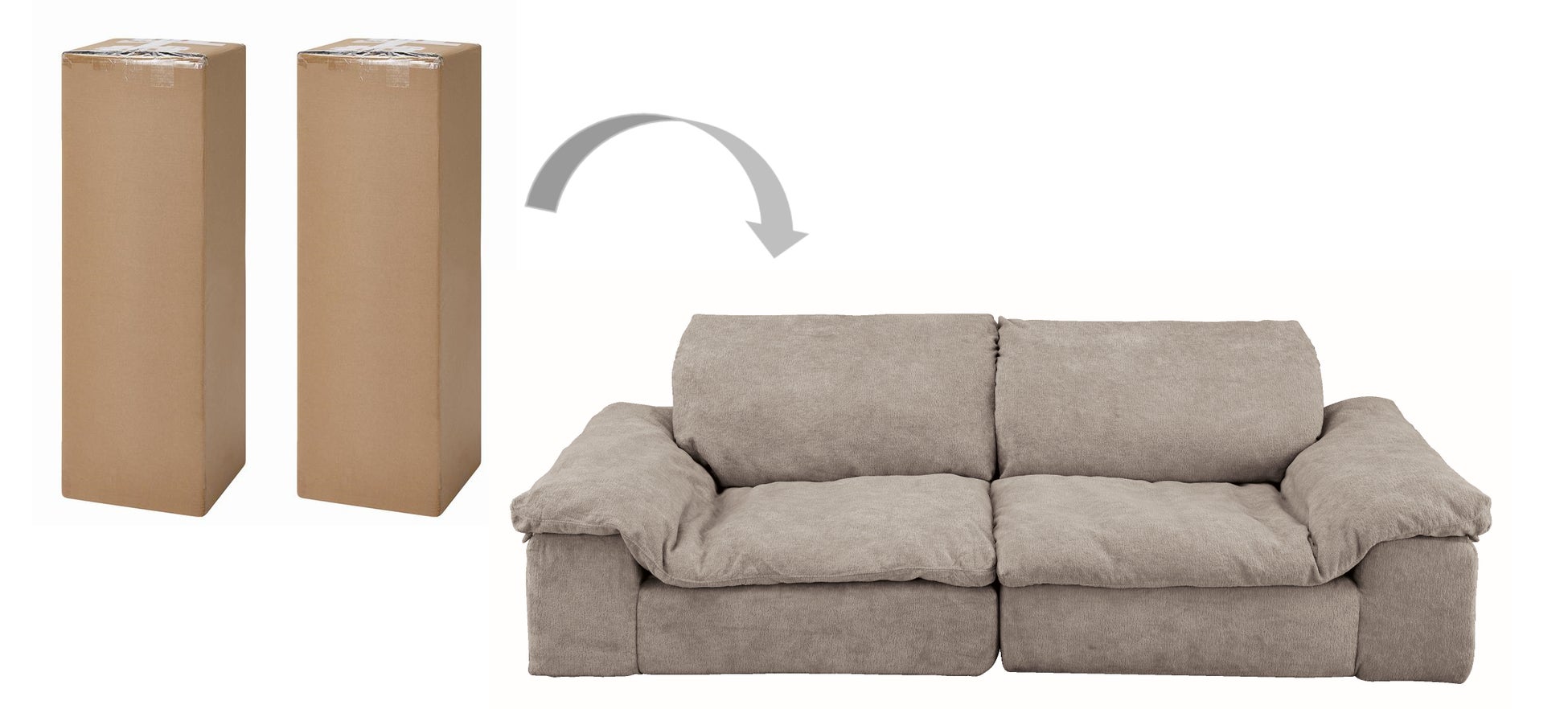 この課題を解決するため、圧縮梱包技術によりコンパクト化し、家族や友人とゆったり座れる横幅222cmのソファが、3辺合計174cm×2梱包でお持ち帰りいただけるようになりました。試作段階では、座り心地を損なわない圧縮方法の確立に苦労しましたが、独自の技術で解決。開封後も快適さを維持するため、素材選定や構造設計にこだわっています。ぜひお近くの店舗で座り心地をお試しください。