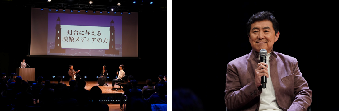 さらに、笠井氏は番組で訪れた灯台の1つ男木島灯台がアニメや漫画の聖地巡礼スポットになっていることを例に「新しいメディアと力を合わせることで灯台観光の新たなきっかけ作りになる。」と話しました。また、トークセッションの感想を訊かれたパネリストのたかまつ氏は「これまで灯台を役割としてしか見ていなかった。映像があることで地域における灯台の存在・歴史・文化・構造・周囲の特徴まで見られるのが映像の良さだと思う。灯台に行くときは映像を見てから訪れたい。」と語り、メディアと灯台が持つ可能性に期待が高まるトークセッションとなりました。