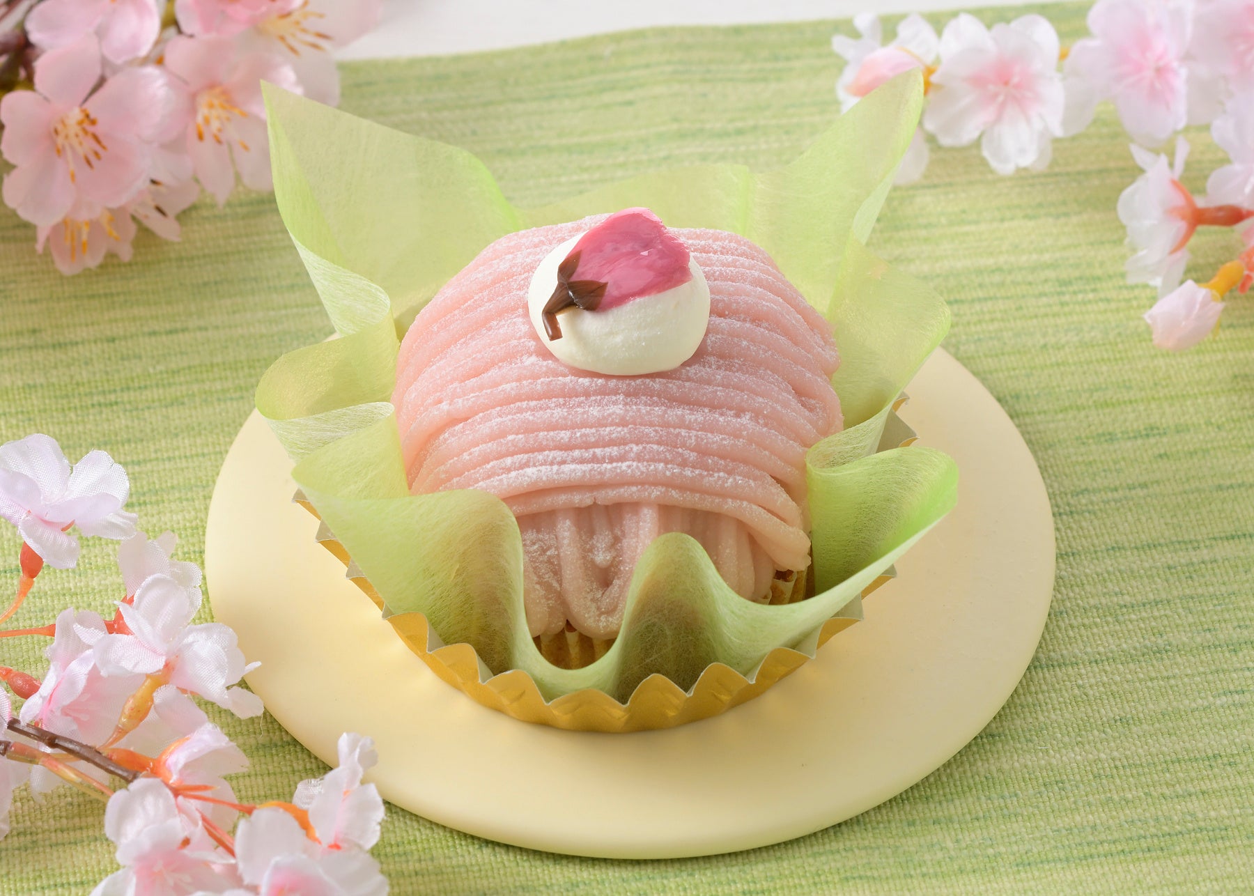 「さくらのケーキ」は、桜風味のクリームやスポンジとカスタードクリームのやさしい味わい、求肥(ぎゅうひ)のもちもち食感が楽しめる毎年人気のケーキ。「さくらと抹茶のモンブラン」は、桜あんや粒あんの甘さに、抹茶のほろ苦さが心地いい一品。
