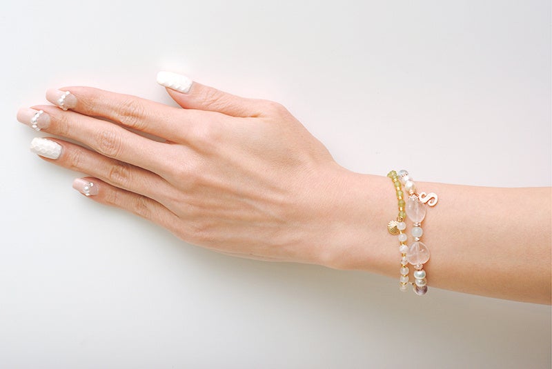 石を繋ぐシリコンゴムの交換も含め、その年に選出された石を入れて組み替えられたブレスレットは、また違った表情を楽しむことができます。