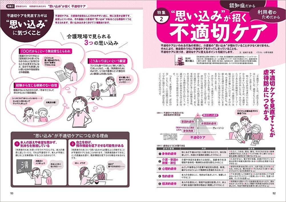 特集「“思い込み”が招く不適切ケア」では、無自覚のうちに行ってしまいがちな不適切ケアを、適切なケアに変えるポイントを解説。よくある事例とともに、普段のケアを見直すきっかけにしてください。
