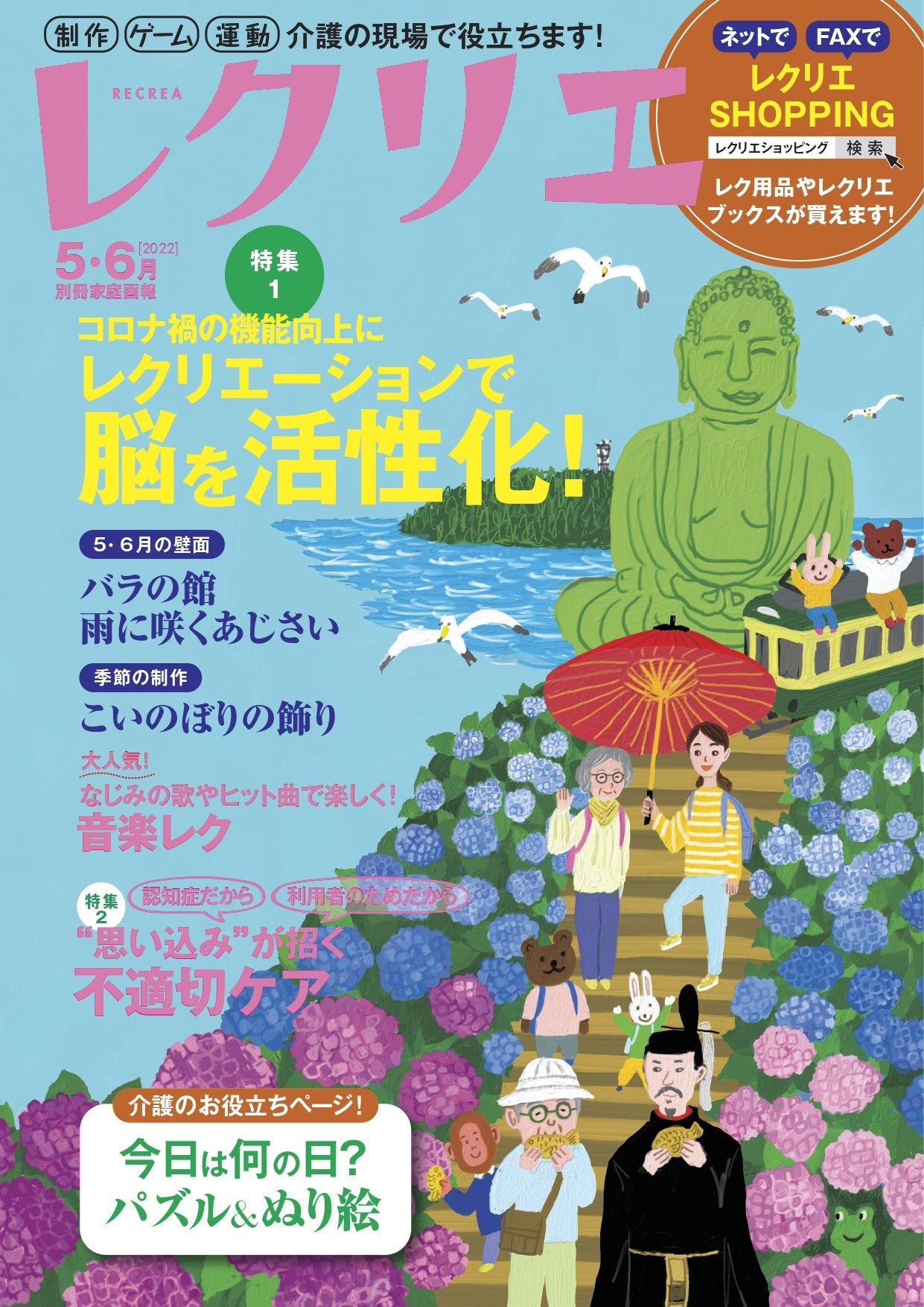 3月31日(木)発売の『レクリエ 5・6月』では、コロナ禍での機能向上に役立つ「脳を活性化させる」レクリエーションを特集。また、介護者の「思い込み」が招く不適切ケアについて解説しました。