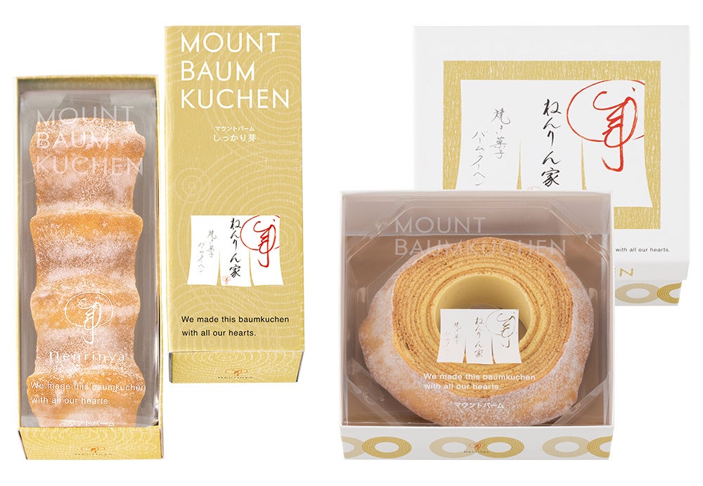 ねんりん家の代表作。⽪はカリッ、中はしっとり熟成の「マウントバーム しっかり芽」。濃厚なバター⾵味の⽣地を、独⾃の窯で⻑時間じっくり焼きあげておいしさを引き出した、こだわりのバームクーヘンです。