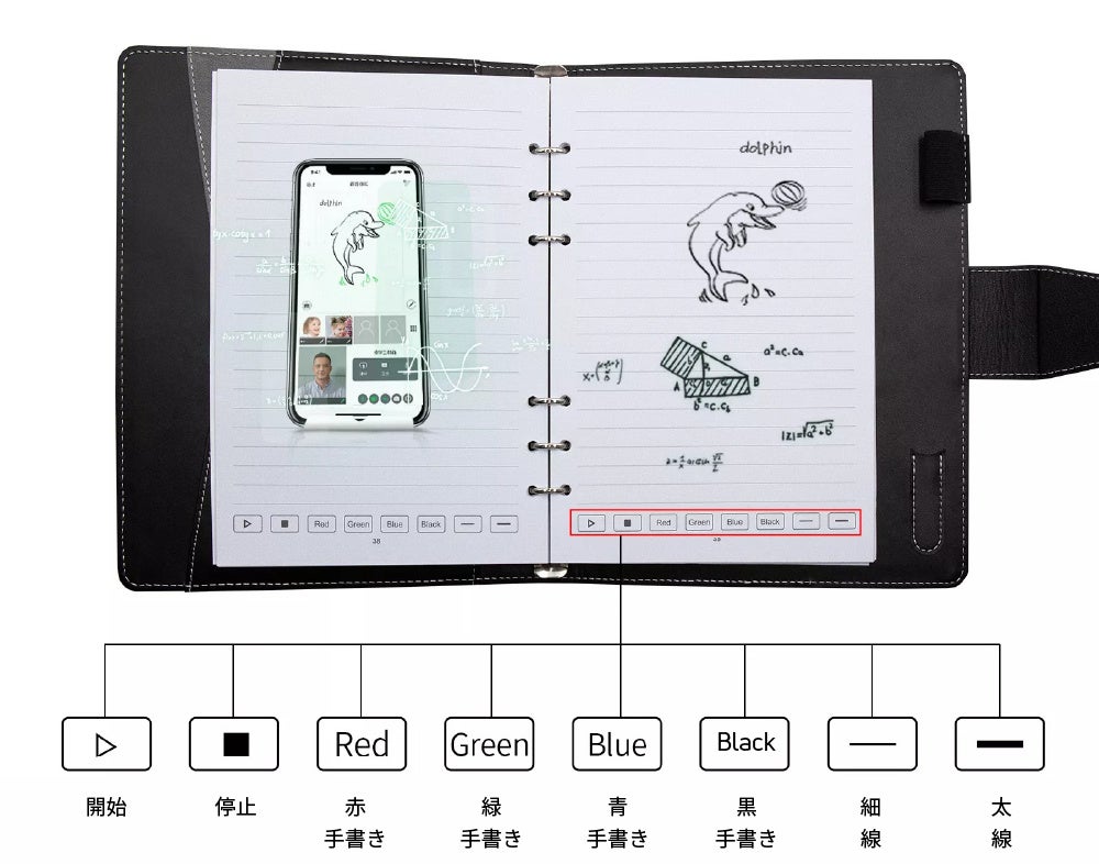 スマートペンと高級感あるPUレザーカバー付ノートブックのセットで、手書きの文字、イラスト、アート、様々なメモや作品をスマートにデジタル化できます。