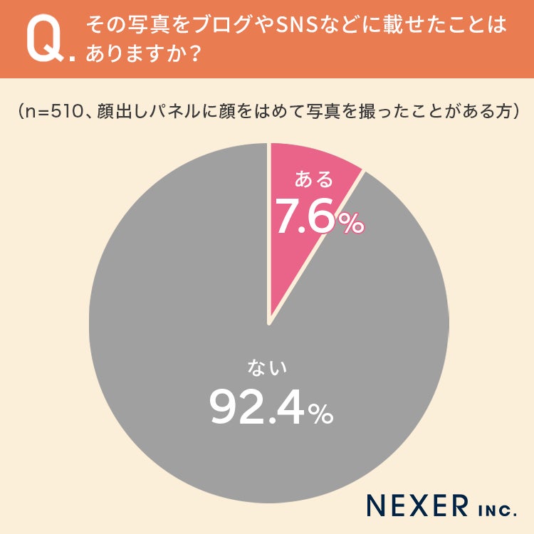 ブログやSNSなどにその写真を載せたことのある方は7.6%という結果になりました。