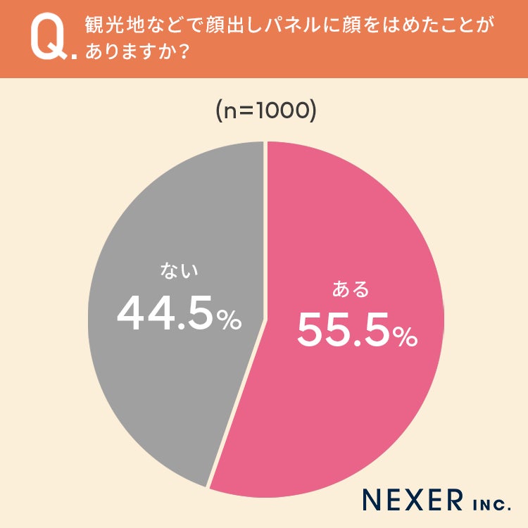 55.5%と半数以上の方が、観光地などで顔出しパネルがあった際に思わず顔をはめたことが「ある」と回答しています。