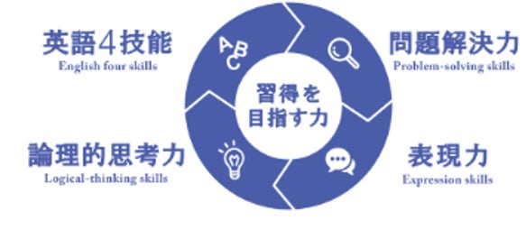 将来、グローバルな社会での活躍を考えるお子さまに向けて、「聞く」「話す」「読む」「書く」の英語スキルだけでなく、グローバルに通用する論理的思考力・問題解決力を身につけ、さらに情報や状況、自分の考えを論理的に整理して英語で相手に的確かつ効果的に伝える表現力を獲得することを目指します。