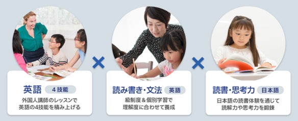 このコースでは、今年度幼児・小学生に対応する講座「グローバルコース」を開講し、社内で選抜された講師が年代に応じた内容で、自分の意見を組み立て、コミュニケーションするための「ロジカルシンキング」「プレゼンテーション」などを母国語(日本語)・英語の2言語で指導します。将来の海外大学・国内難関大学への進学やグローバルな活躍なども視野に、英語力のみならず思考力・表現力を幼児期から大学受験期まで継続的に磨き続けたいニーズに応える環境を提供します。