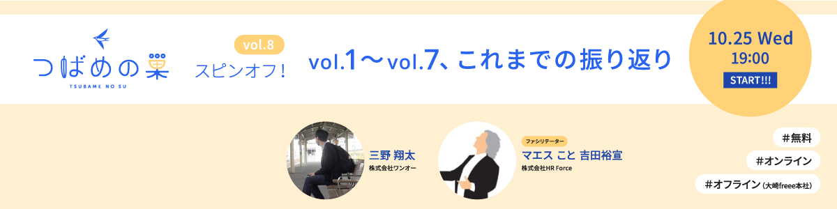 「Vol.1~7の振り返り」をテーマに、10月25日(水)に「つばめの巣」スピンオフVol.8を開催します。