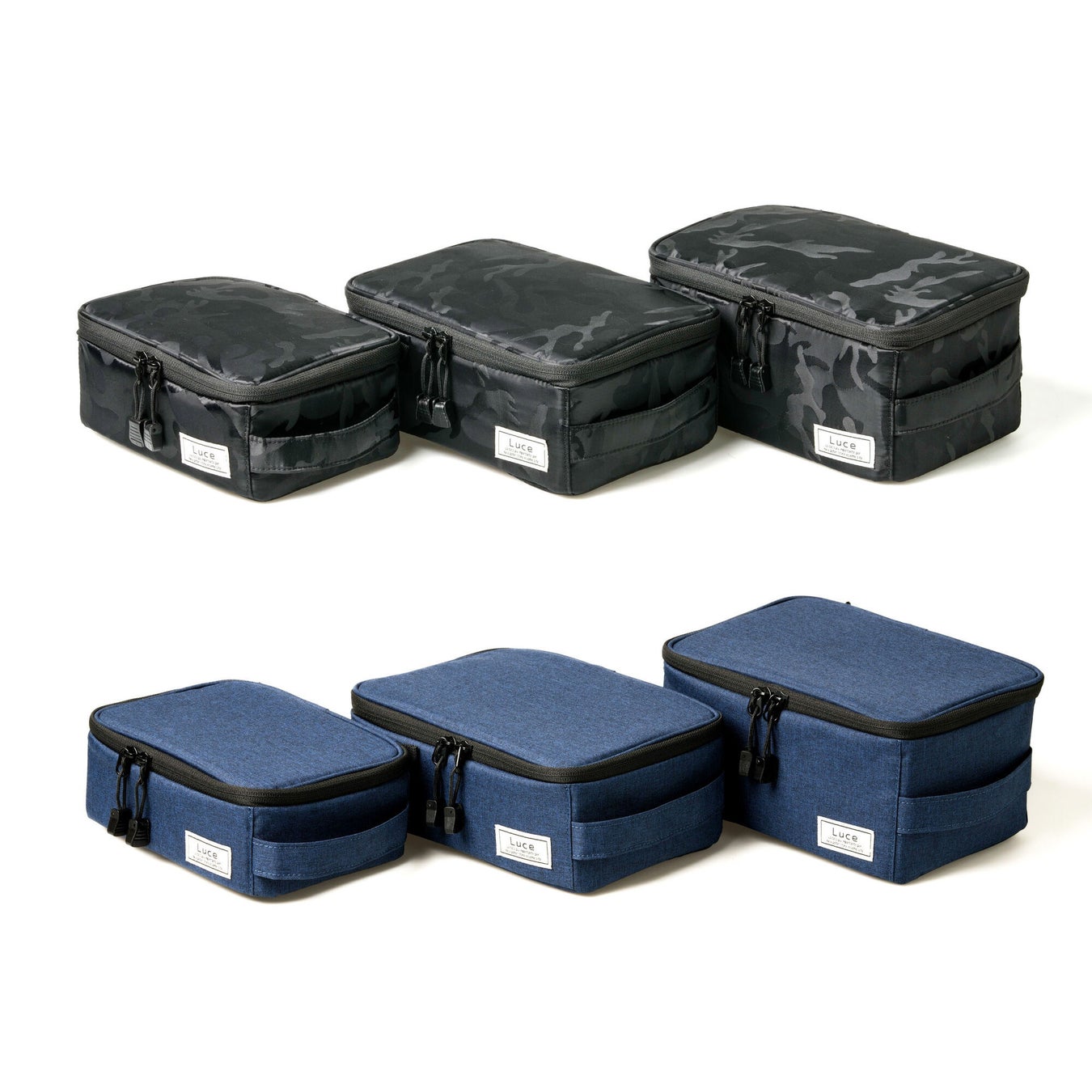 カラーはブラックカモフラージュとミッドナイトブルーの2色、サイズはSサイズ、Mサイズ、Lサイズの3サイズ、計6つのバリエーションを用意しています。
