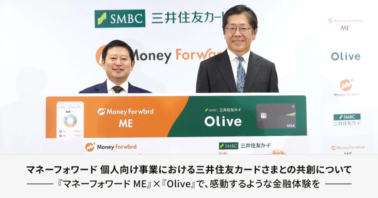 マネーフォワードが提供する家計簿・資産管理アプリ『マネーフォワード ME』と、三井住友カードが提供するデジタルをベースとした最先端のキャッシュレスサービスやSMBCグループが提供する総合金融サービス『Olive』を融合させ、あらゆる人のお金の課題を解決するサービスの開発・提供を進めることを発表しました。