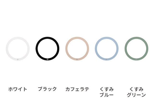 シンプルで洗練されたデザインで、ホワイト・ブラック・カフェラテ・くすみブルー・くすみグリーンの5色を展開します。