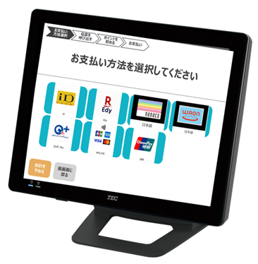 セルフレジは、お客様自身が飲食後に自身でタッチパネルを操作し会計を行う機能です。会計伝票のバーコード情報をセルフレジで読み取り、タッチパネルで支払方法を選択後、カードやスマホ決済などのキャッシュレスで支払いできます。ユーザー目線で考えた操作画面で、シンプルな操作となっています。