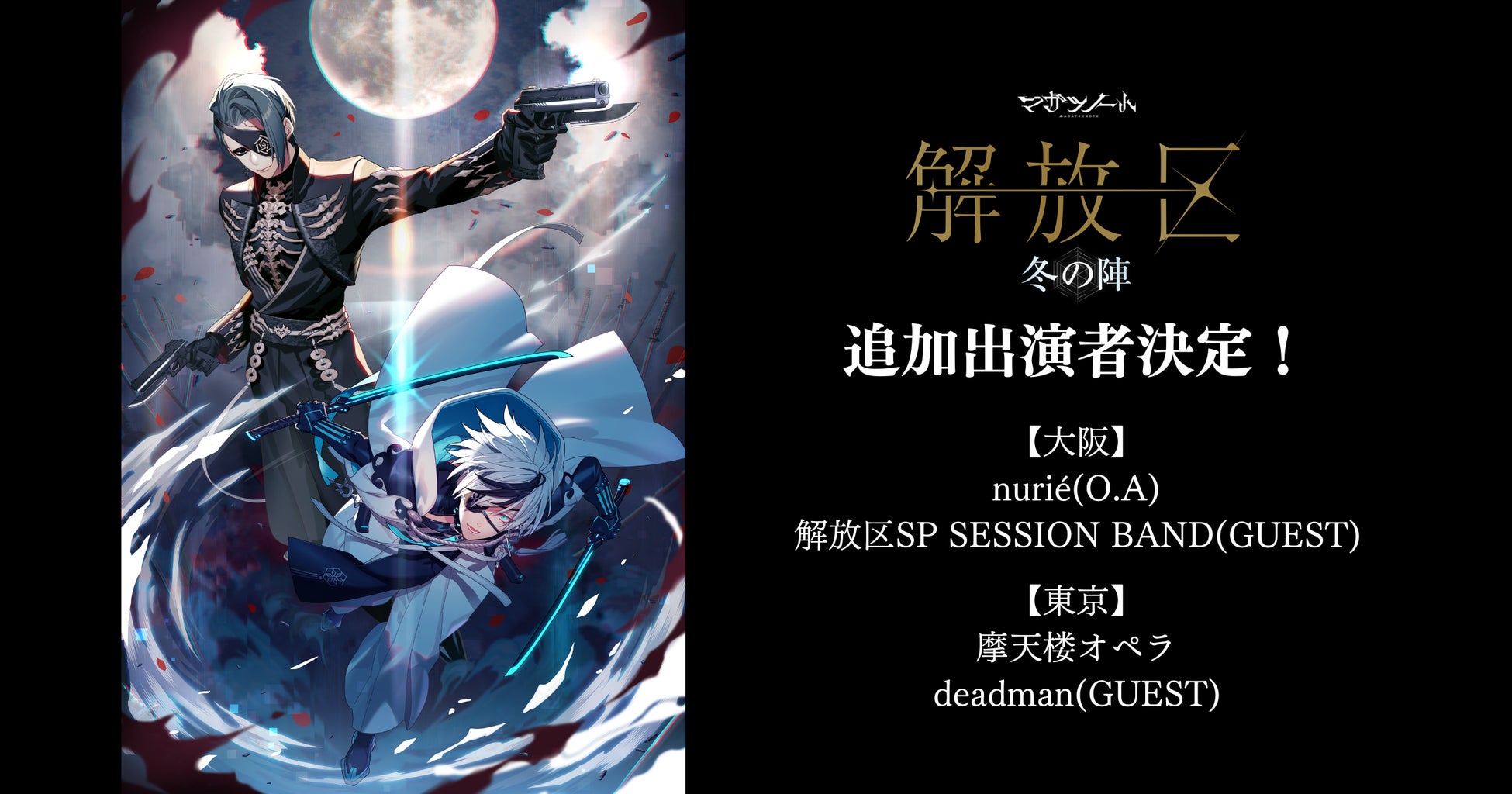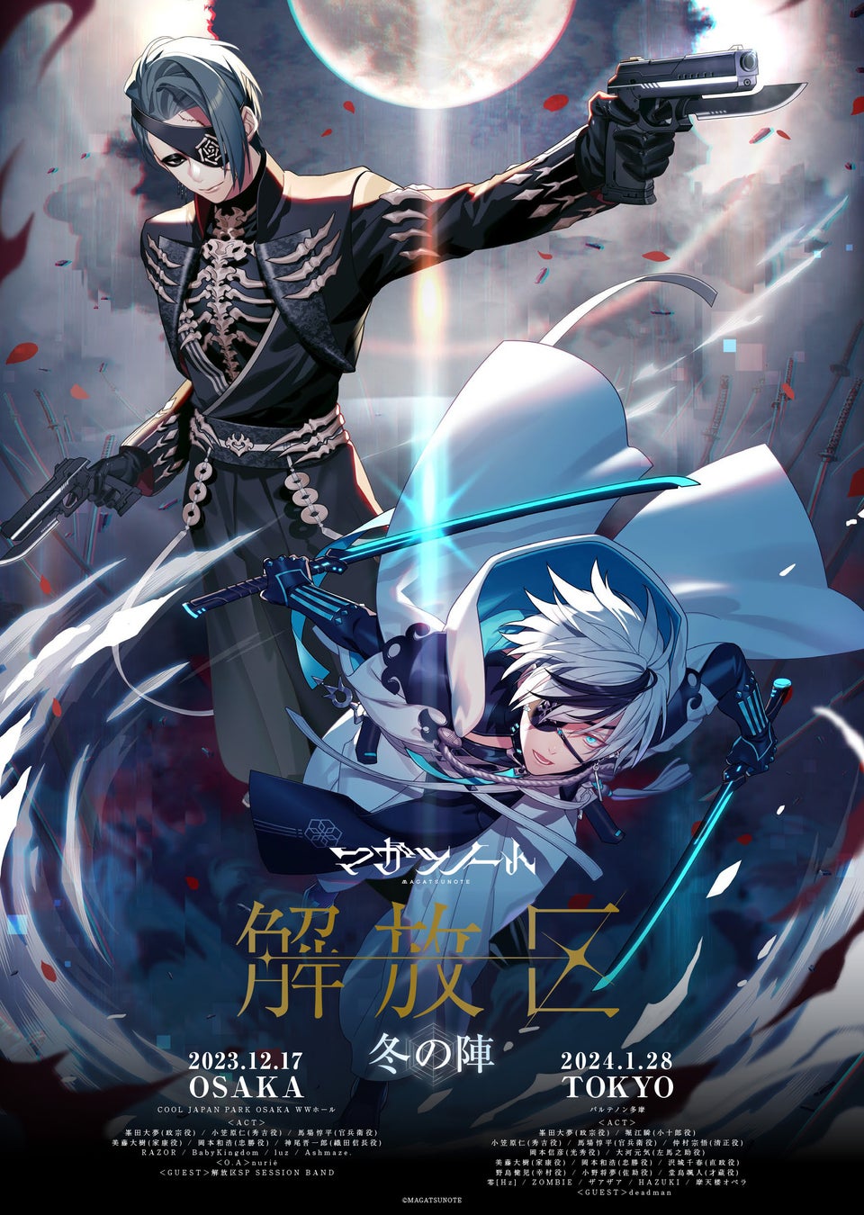 出演声優とコラボアーティストが集結し、ライブステージで『マガツノート』の世界観を創り上げる大型ライブイベント第3弾「解放区-冬の陣-」について、東京公演の会場がパルテノン多摩(東京都多摩市)に決定し、大阪公演・東京公演それぞれの追加出演アーティストと、描き下ろしのライブイベントキービジュアルを発表いたしました。