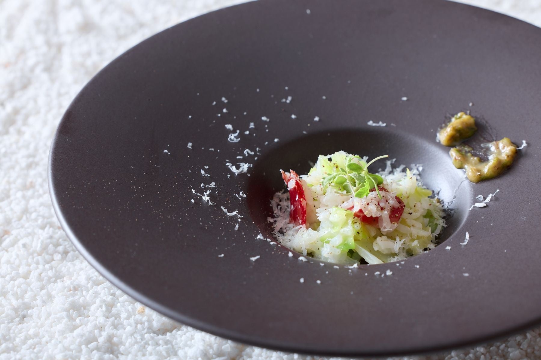 【温製料理②】 「あいちのかおり」と春キャベツのリゾット 蕗の臺味噌のアクセント
