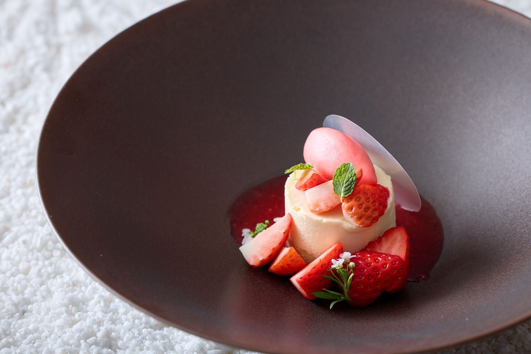 コーステーマは「春の庭園」。桜鯛や春苺といった旬の食材を主役に、地元愛知が誇るブランド米「あいちのかおり」や西京味噌・蕗の薹など、和の調味料やエッセンスを独創的なフレンチの技法で昇華させました。