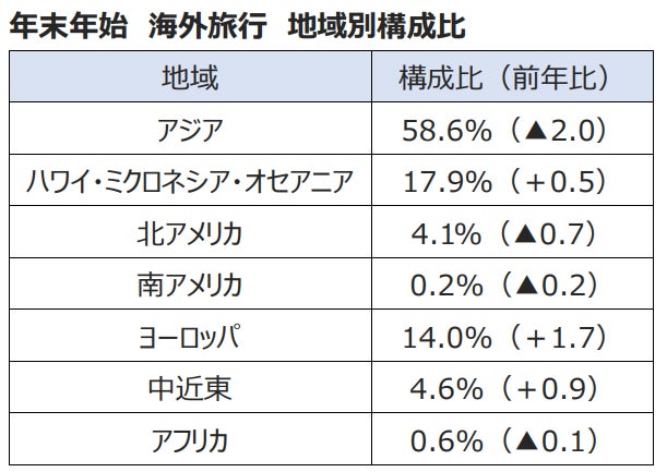 アジア地域の旅行先が根強い人気、ヨーロッパ地域・中近東地域も増加