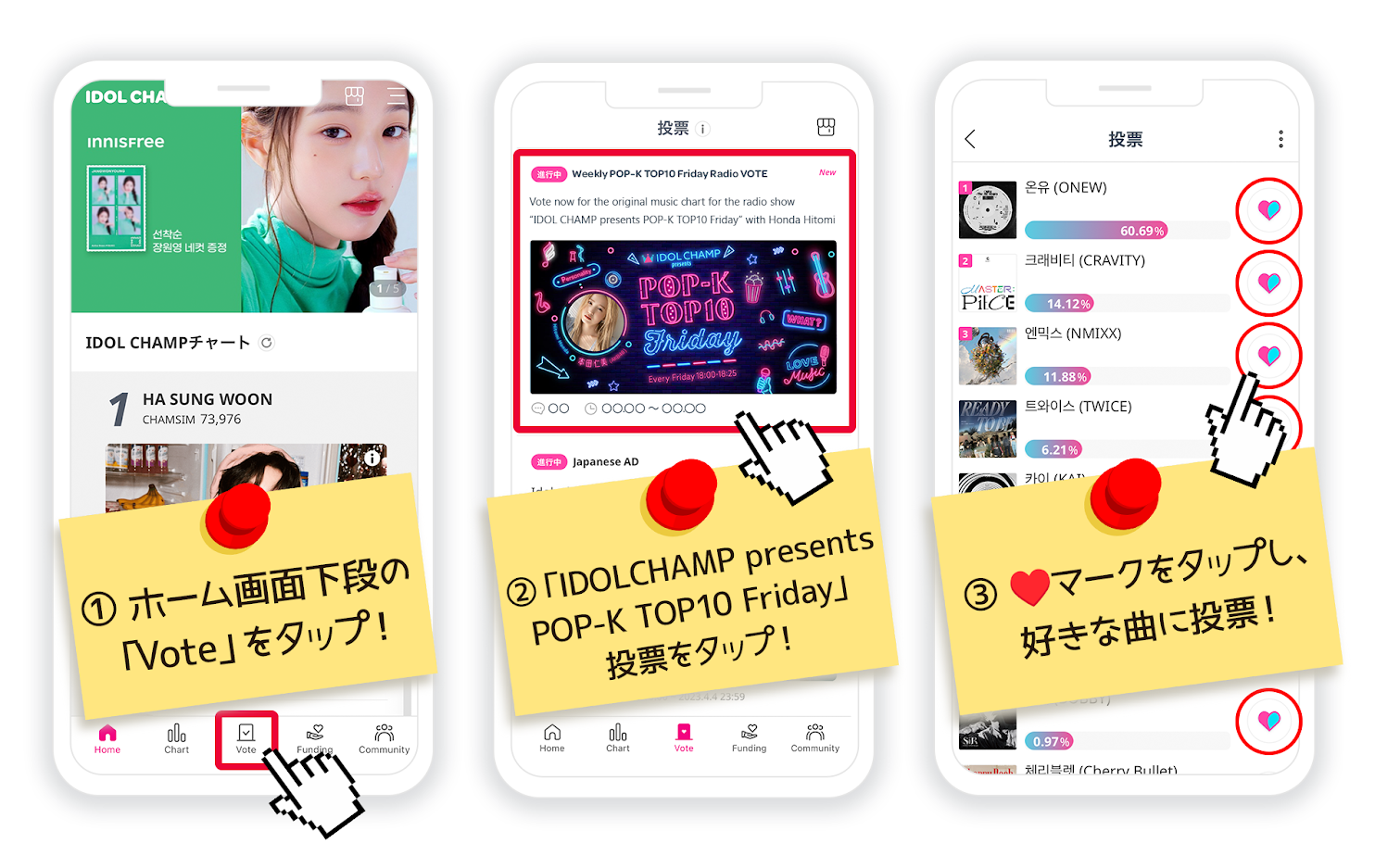 | ■IDOL CHAMPアプリ内での投票方法 |