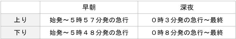 <下北沢 地下1階ホームのみでの運用時間(平日・土休日共通)>