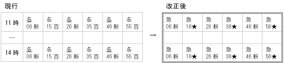 現行ダイヤをベースに、平日夜間の特急増発や、停車駅変更で分かりやすさの向上など