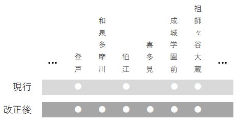 ・朝・夕時間帯を中心に、東京メトロ千代田線と直通運行する「準急」を喜多見・和泉多摩川へ停車することで、特に夕方帰宅時間帯において同2駅への下り方面利用の際に、成城学園前での乗り換えが不要になります