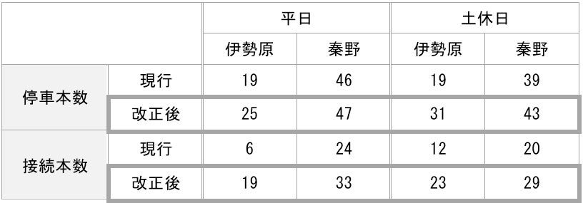 日中時間帯に伊勢原・秦野へ停車する列車本数を増加