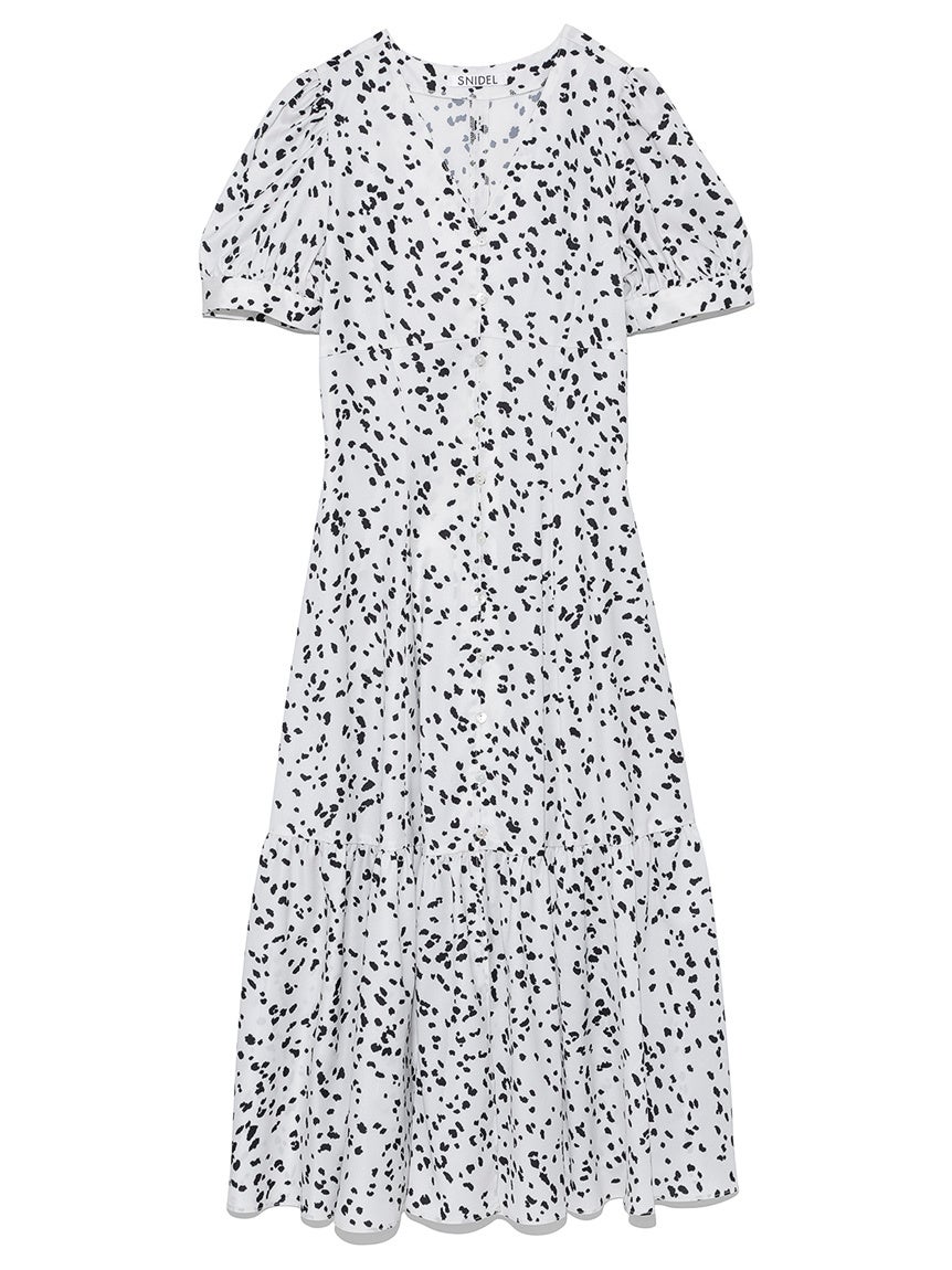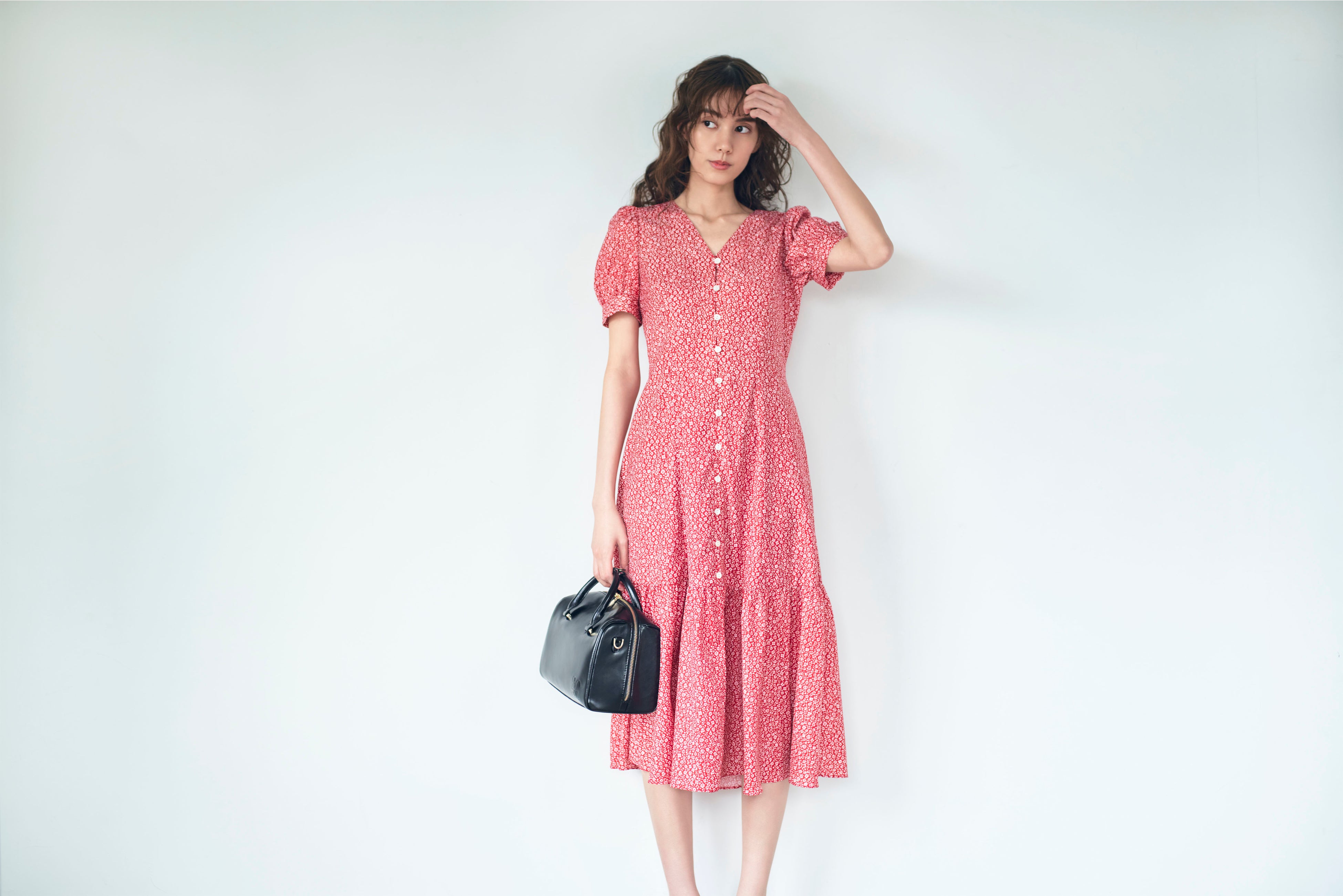 SNIDELで人気のワンピースがオープン・ポップアップストア限定アイテムとしてリバイバル。ヴィンテージライクなデザインと女性らしいシルエットでレディな印象に。オリジナルの小花柄とランダムドット柄の二色展開でご用意しました。
