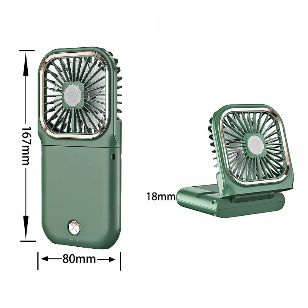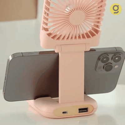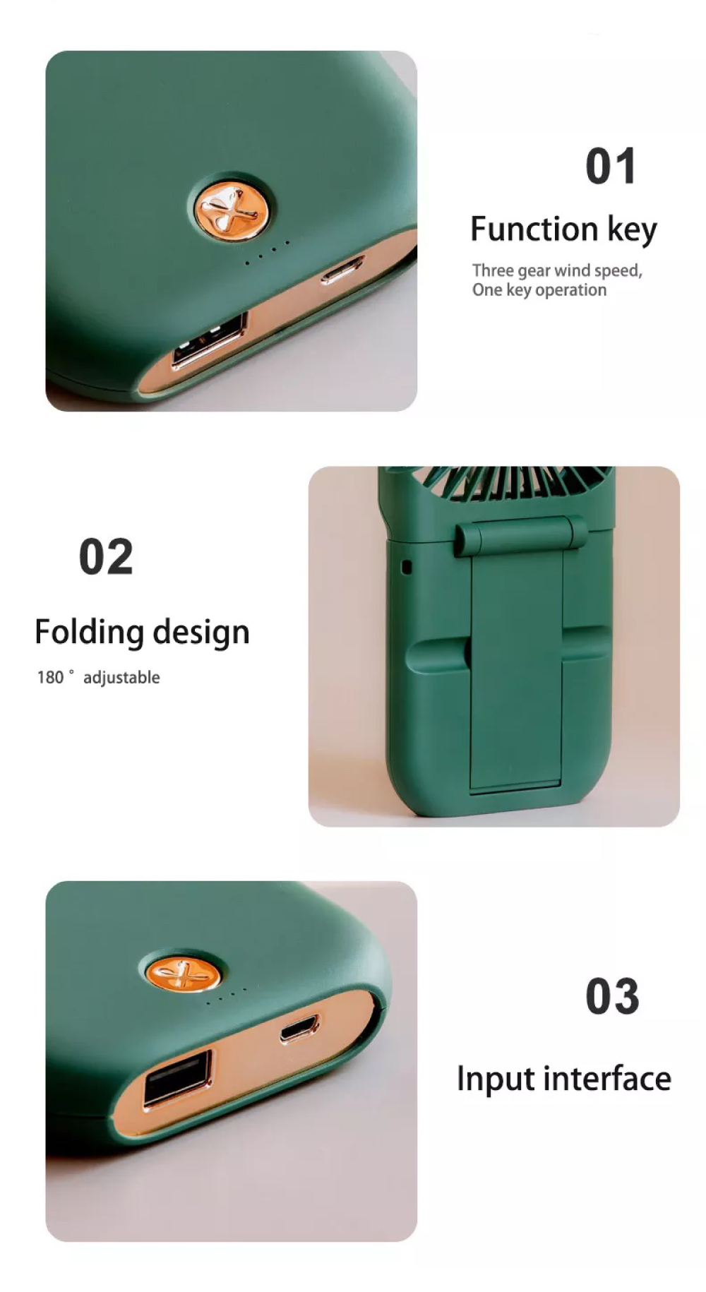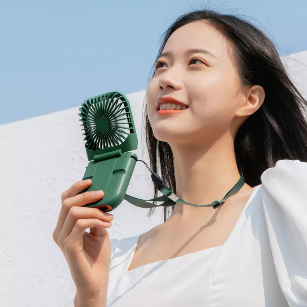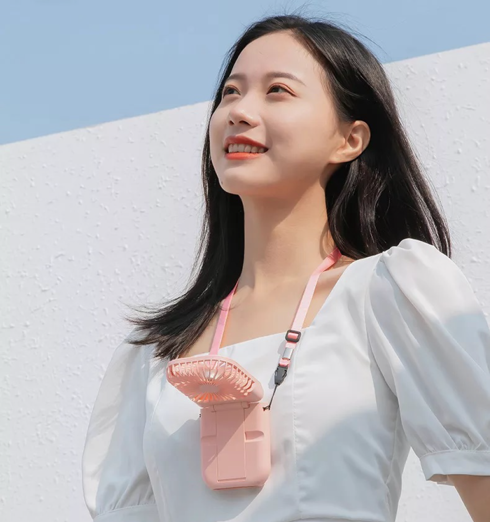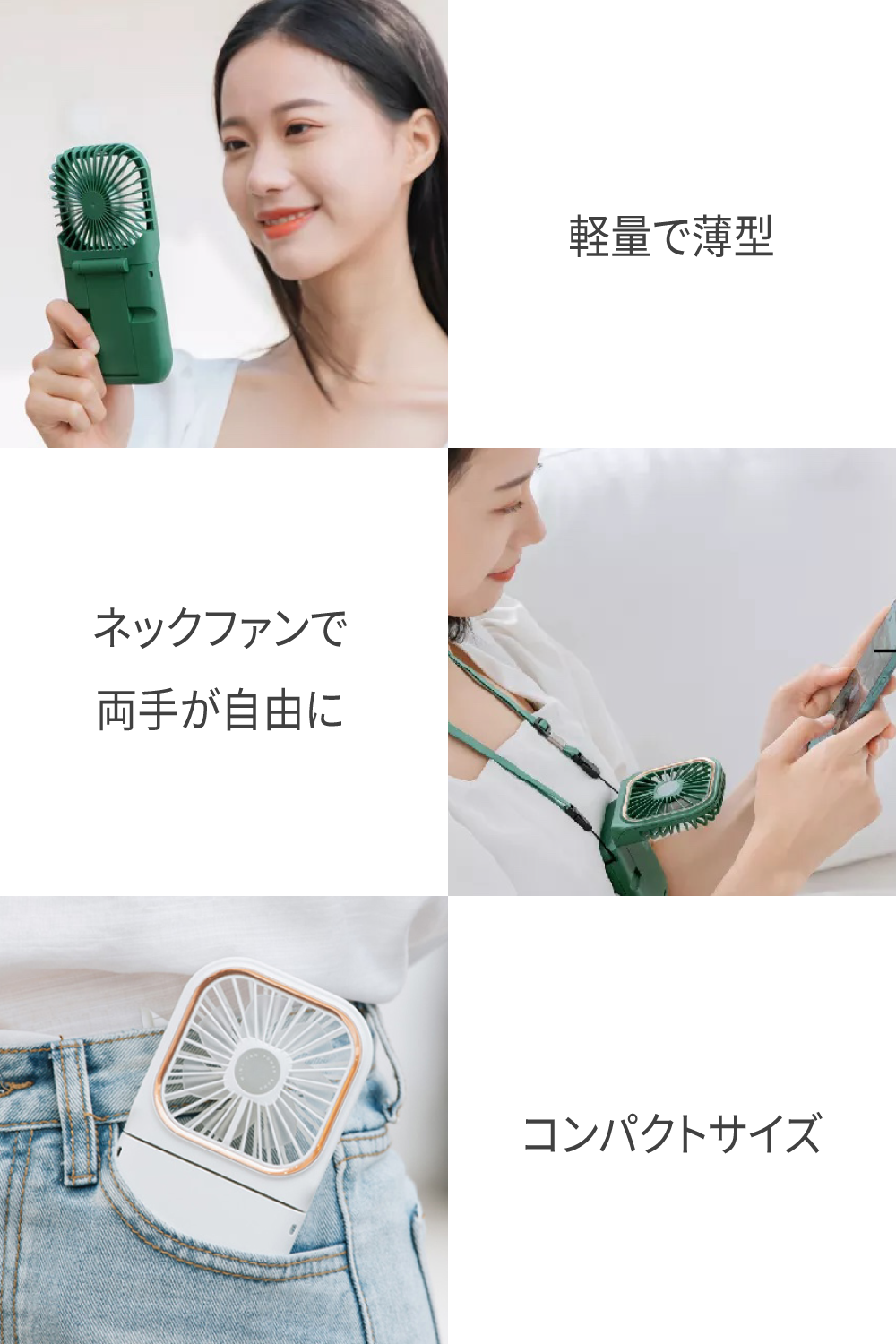持ち運びに便利なミニサイズ!多機能ハンディーファン【折りたたみ/首掛け/スマホスタンド/3段階の風力設定/充電式】