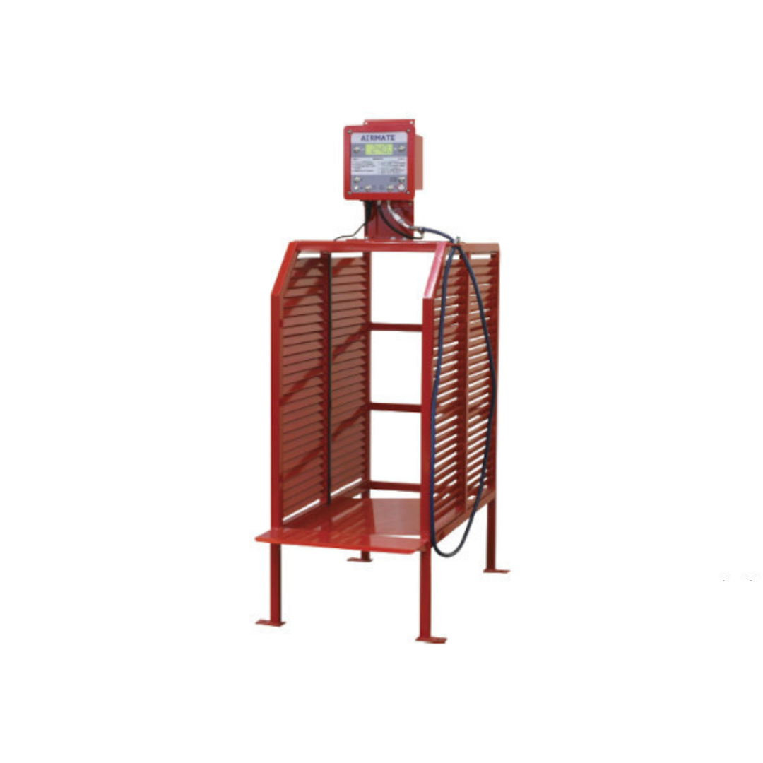 ・タイヤ仮置き台標準仕様で、ホイールディスク面を右にしてケージ内に入れる傾斜底のためタイヤは自然に左傾斜