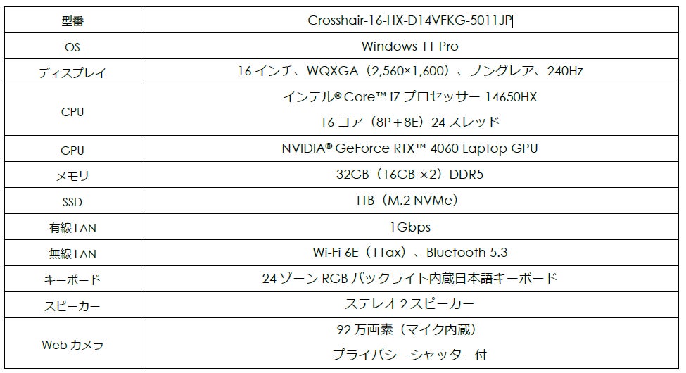 ・Crosshair-16-HX-D14VFKG-5011JP 販売ページ:https://jpstore.msi.com/shopdetail/000000000929