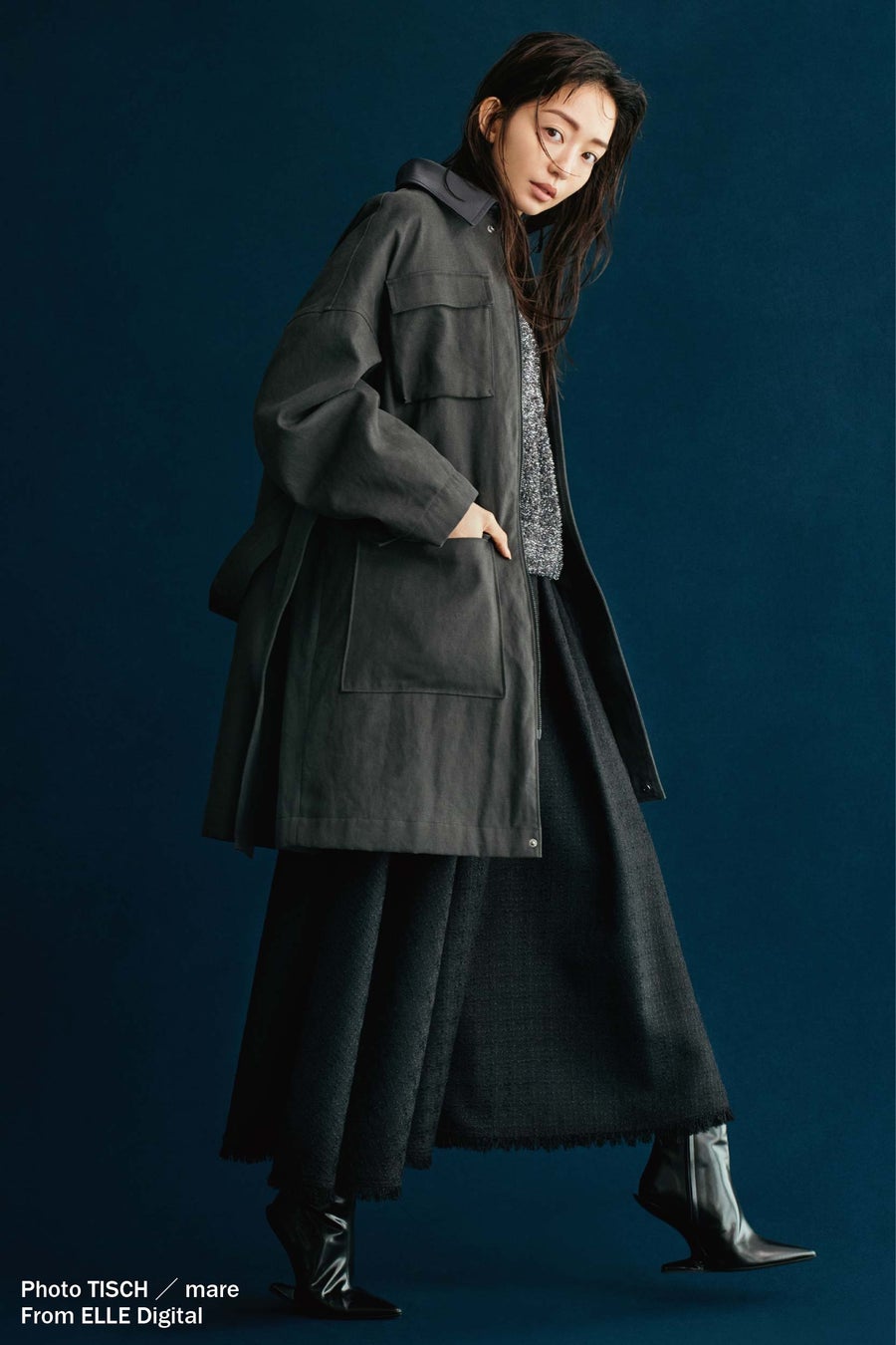 今回のタイアップでは、「オブリオ」が2024 A/Wに掲げるシーズンキーワード「タフ」「ハンサムウーマン」にフォーカスして、芯のある知的で凜とした女性像を表現。ブランドのアイコンである上質なアウターを軸に、メンズライクなパンツスタイルに柔らかさのあるニットを効かせた着こなし、タフな印象のハンティングジャケットにレディライクなボリュームスカートを合わせた着こなしなど、テイストをミックスした全6ルックが登場します。松島花さんのパーソナルな魅力が感じられるビジュアルは必見です。