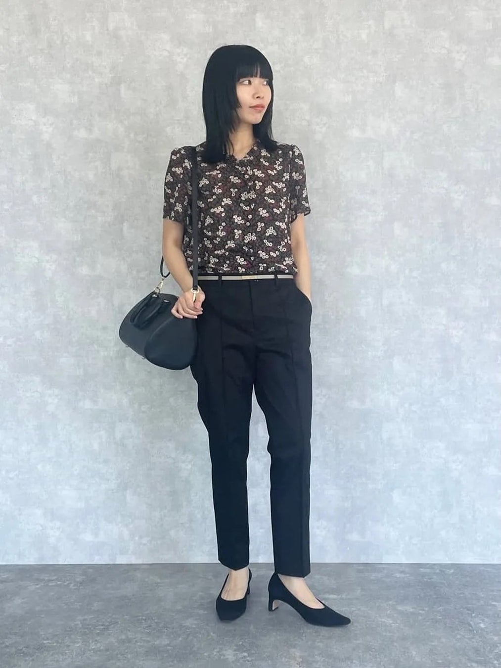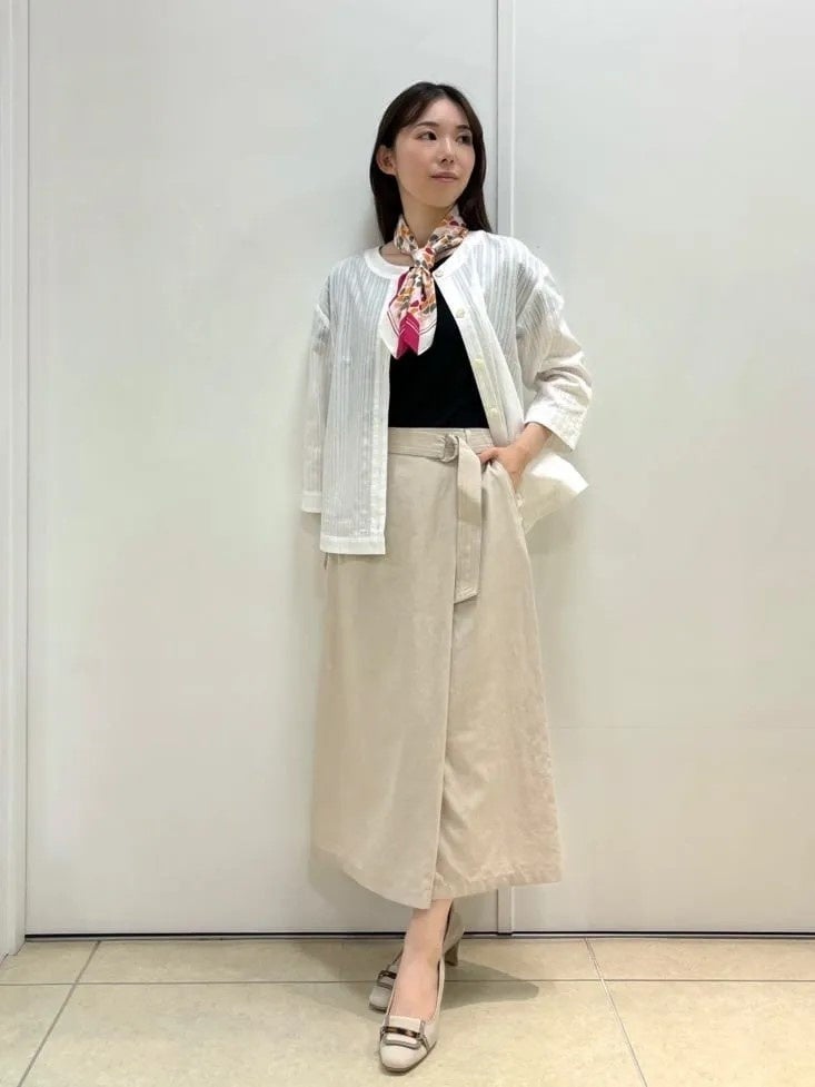 シンプルで着回しやすく、お仕事からお出かけまでデイリーに活躍します。オフィスでは、タックインしたブラウスに細ベルトのきちんと感あるスタイリングがおすすめです。