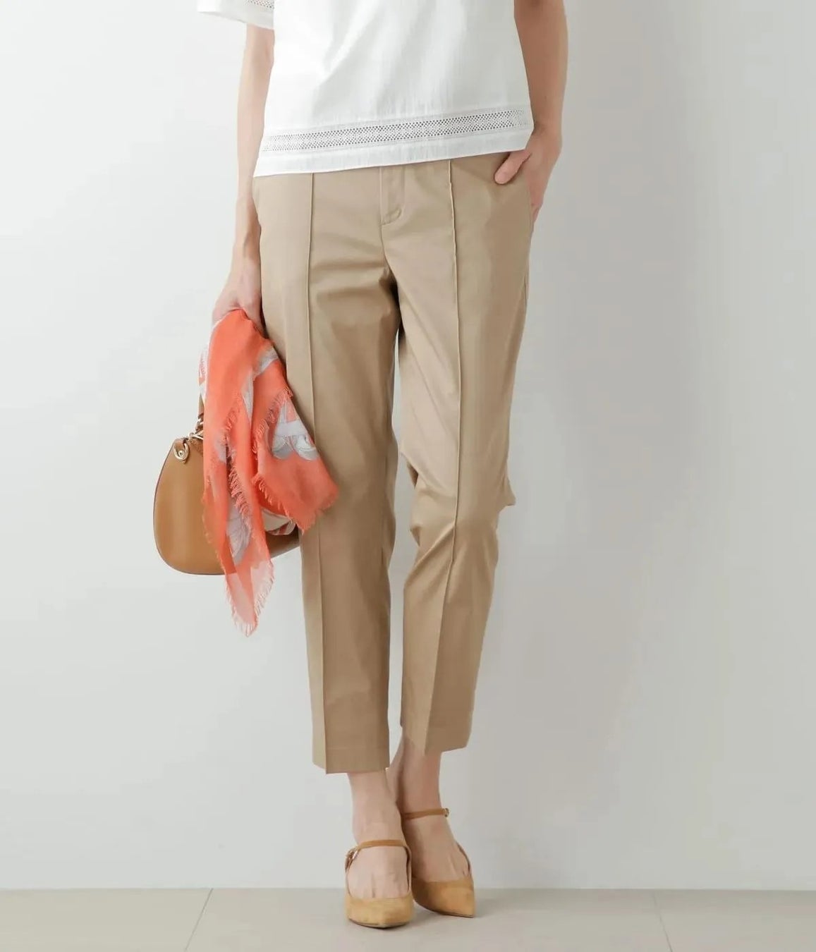 オンオフどちらのスタイルにもマッチする、シンプルなチノパンツ。ゆったりとした腰周りや生地のストレッチ性など、日常使いしやすいリラックスした穿き心地にこだわりました。様々なトップスと合わせやすく、ロングシーズンお使いいただけるアイテムです。