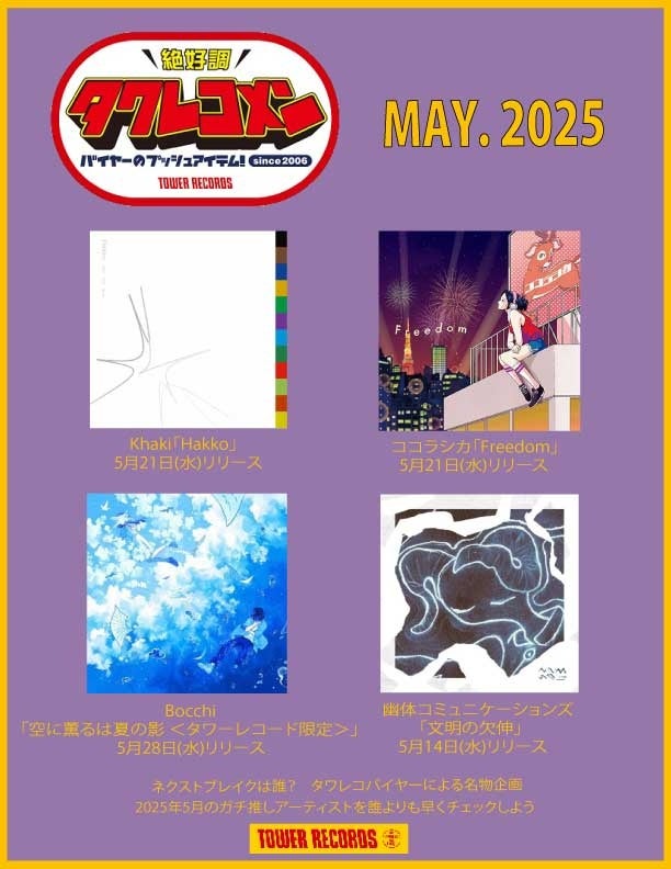 タワーレコードでは、2025年5月のタワレコメンのプッシュアイテムが決定しました。