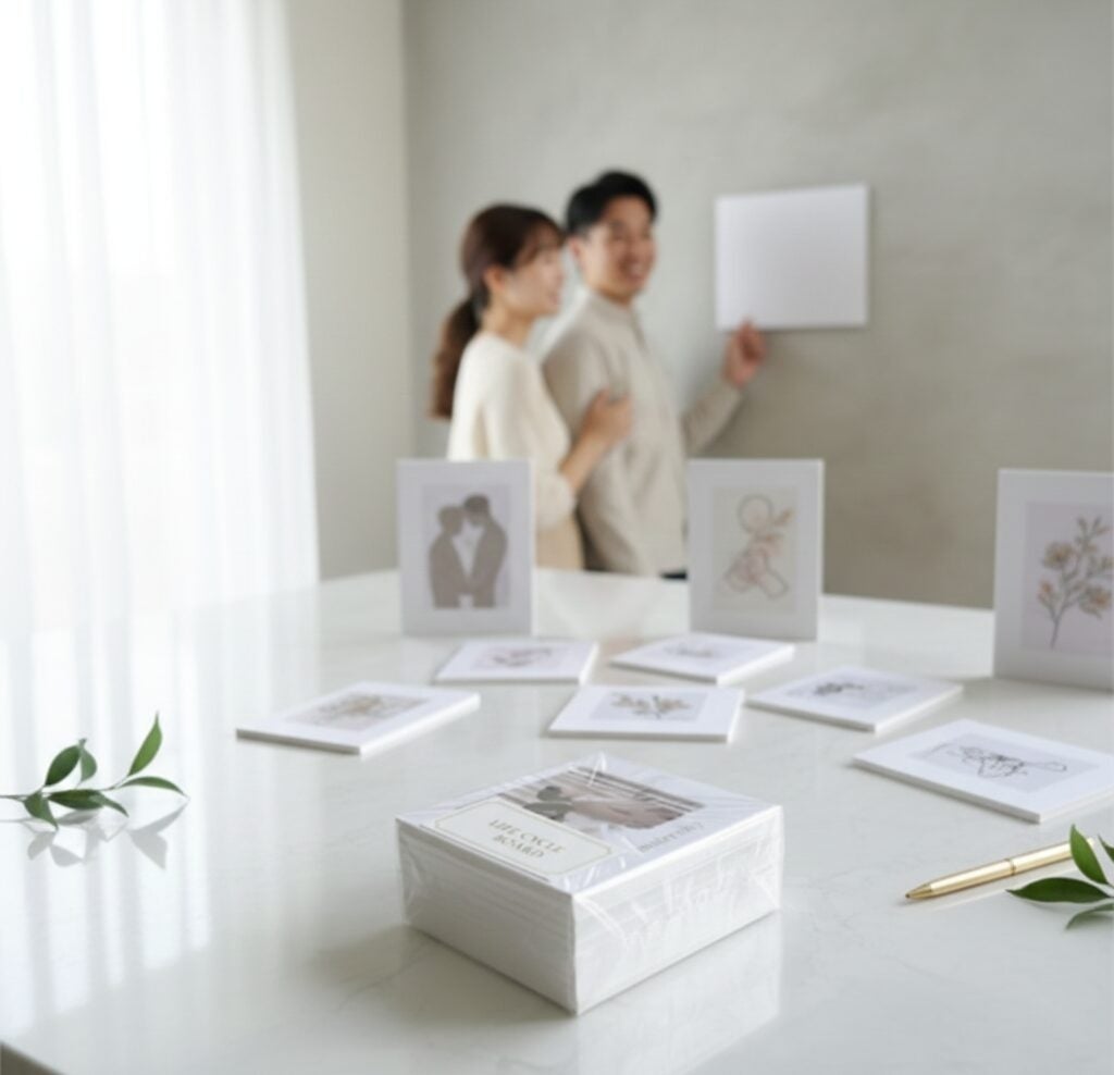 写真工房ぱれっとより、専属デザイナー監修『LIFE CYCLE BOARD』が登場。あえて余白を残したデザインに、ふたりのペースで未来の写真を足していく。人生に寄り添い続ける、新しい記念のカタチ。