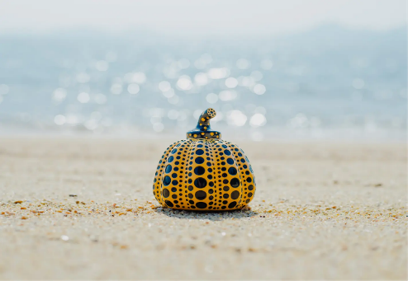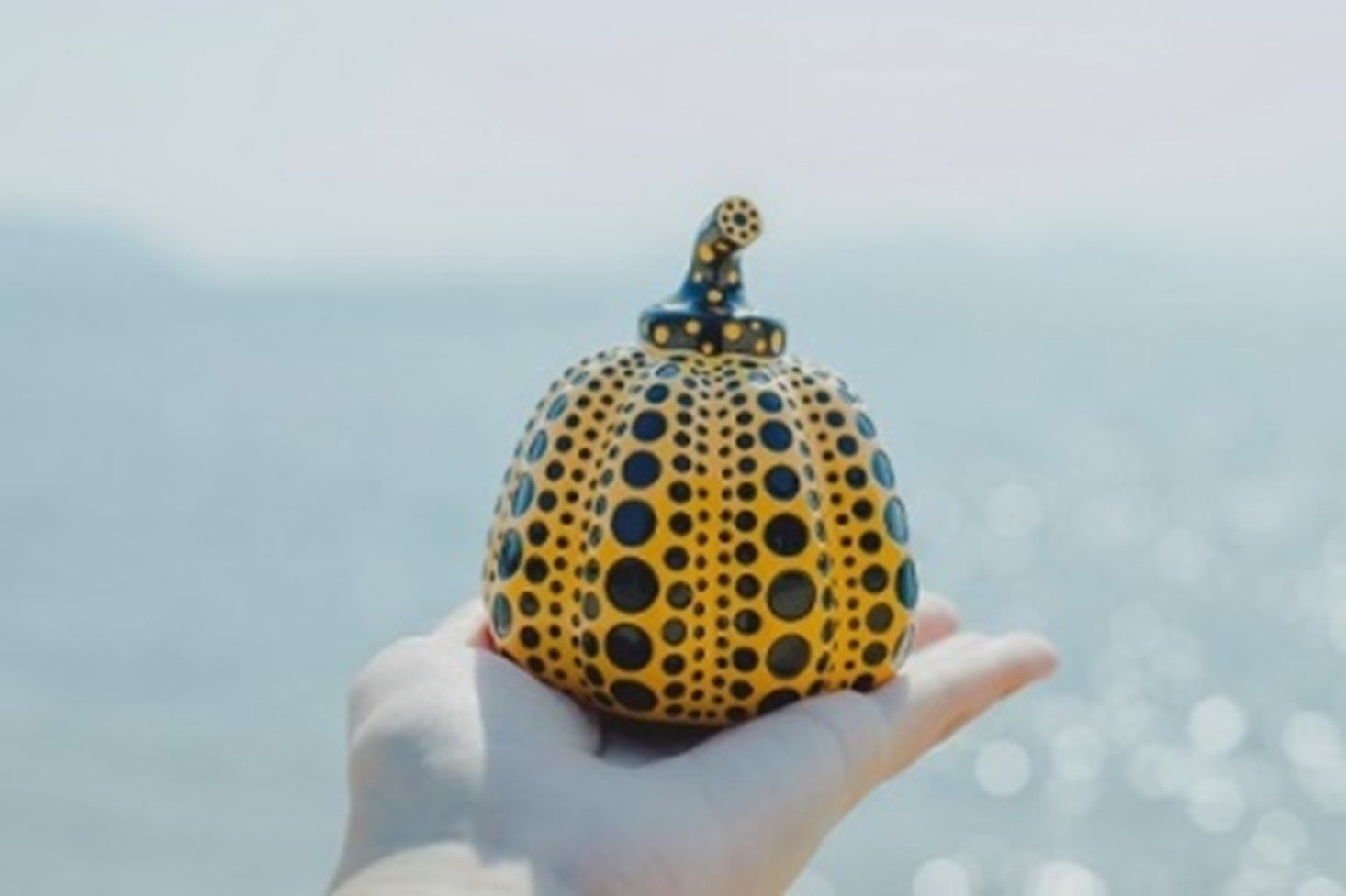 草間彌生《南瓜》のオブジェです。ベネッセハウス ショップのためだけに作られた限定BOXに入った直島限定仕様です。オブジェは、1点1点手作業で作られており、黒のドット部分は注射器で色づけを行うなど、1個完成するのに3日間かかる精巧なつくりになっています。